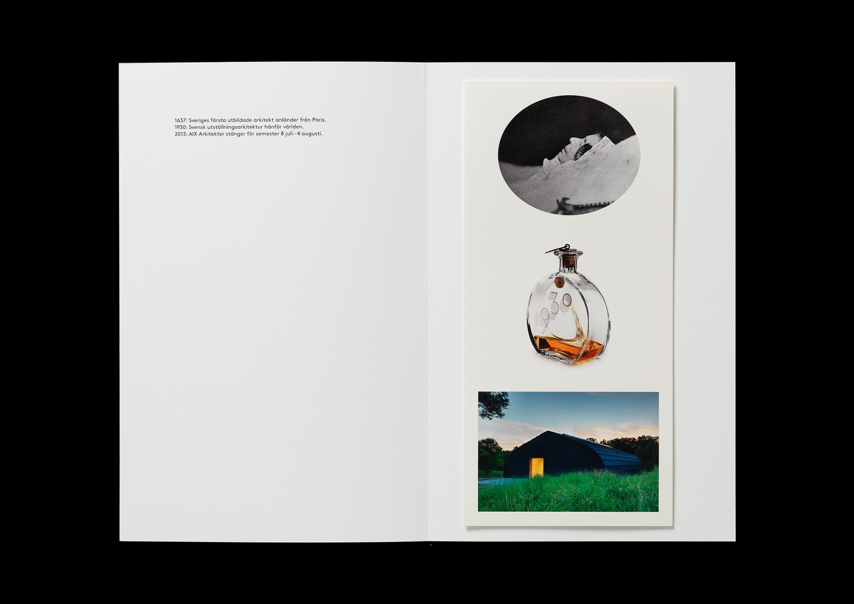 Folder: 220x340 mm. Postcard: 148x105 mm. Offset, UV-varnish and perforation. Commissioned by AIX Arkitekter. (2013)