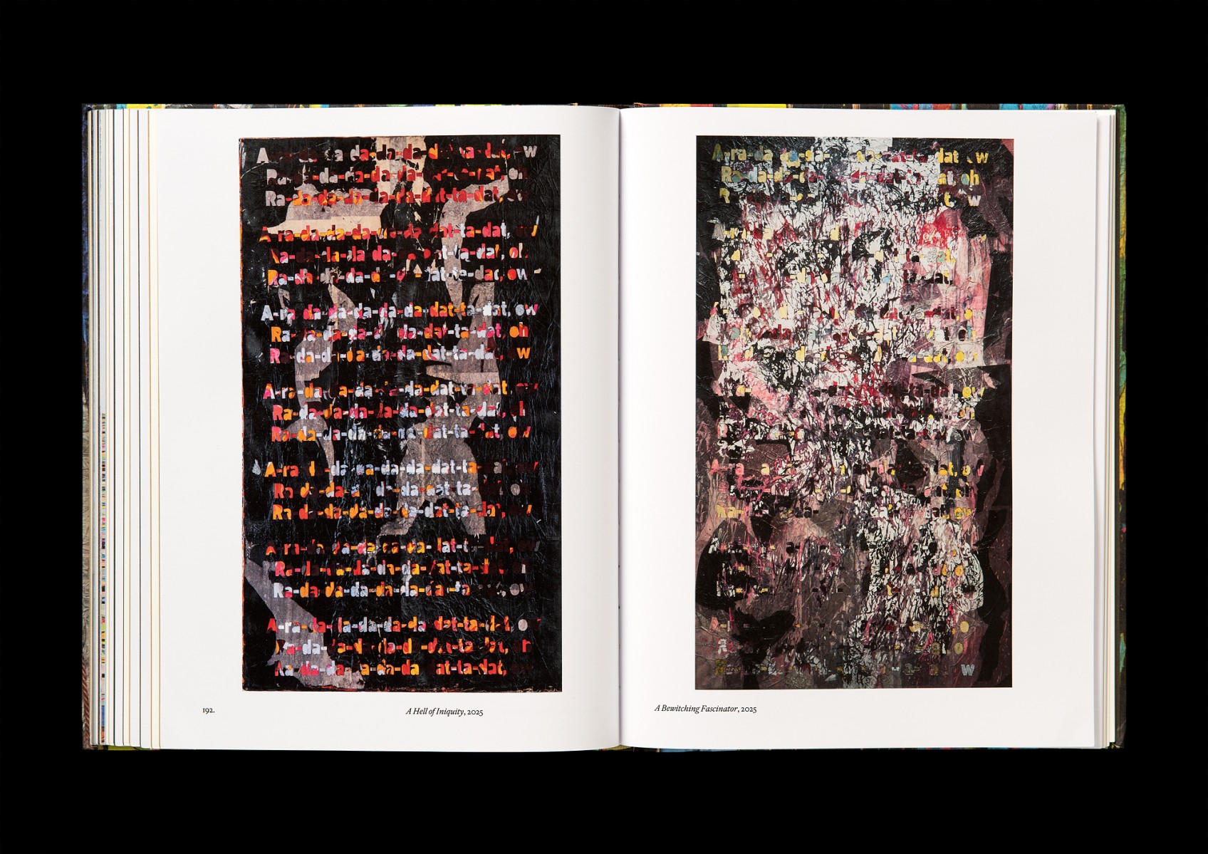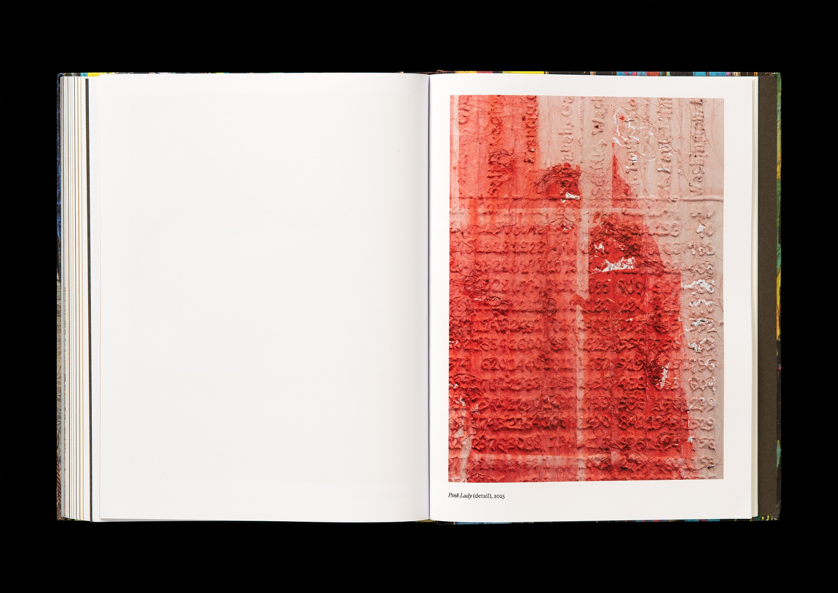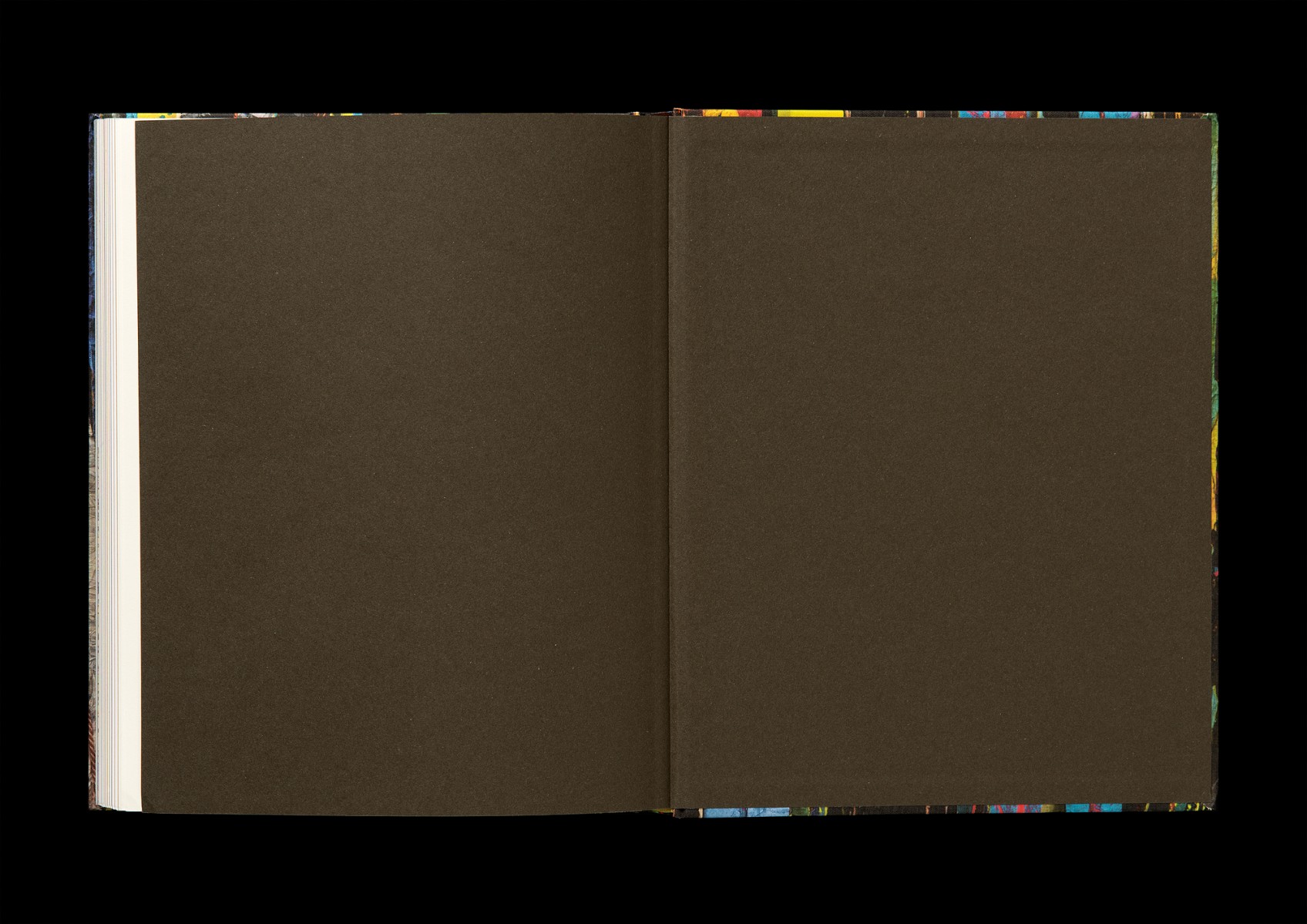 Hardcover, 256 pages, 235x295 mm. 11 glued-in sheets with screen printed quotes. Foil stamped cover with offset-printed image. Content printed in offset. (2024–2025)