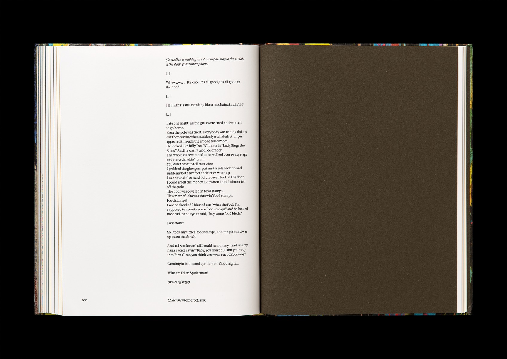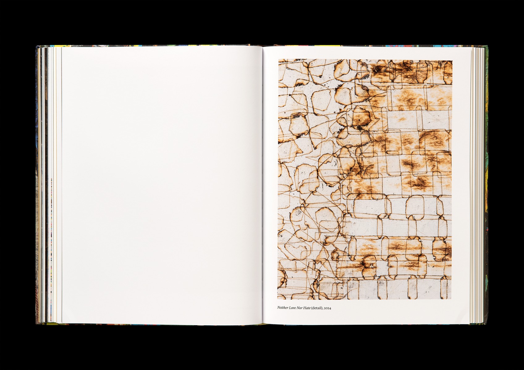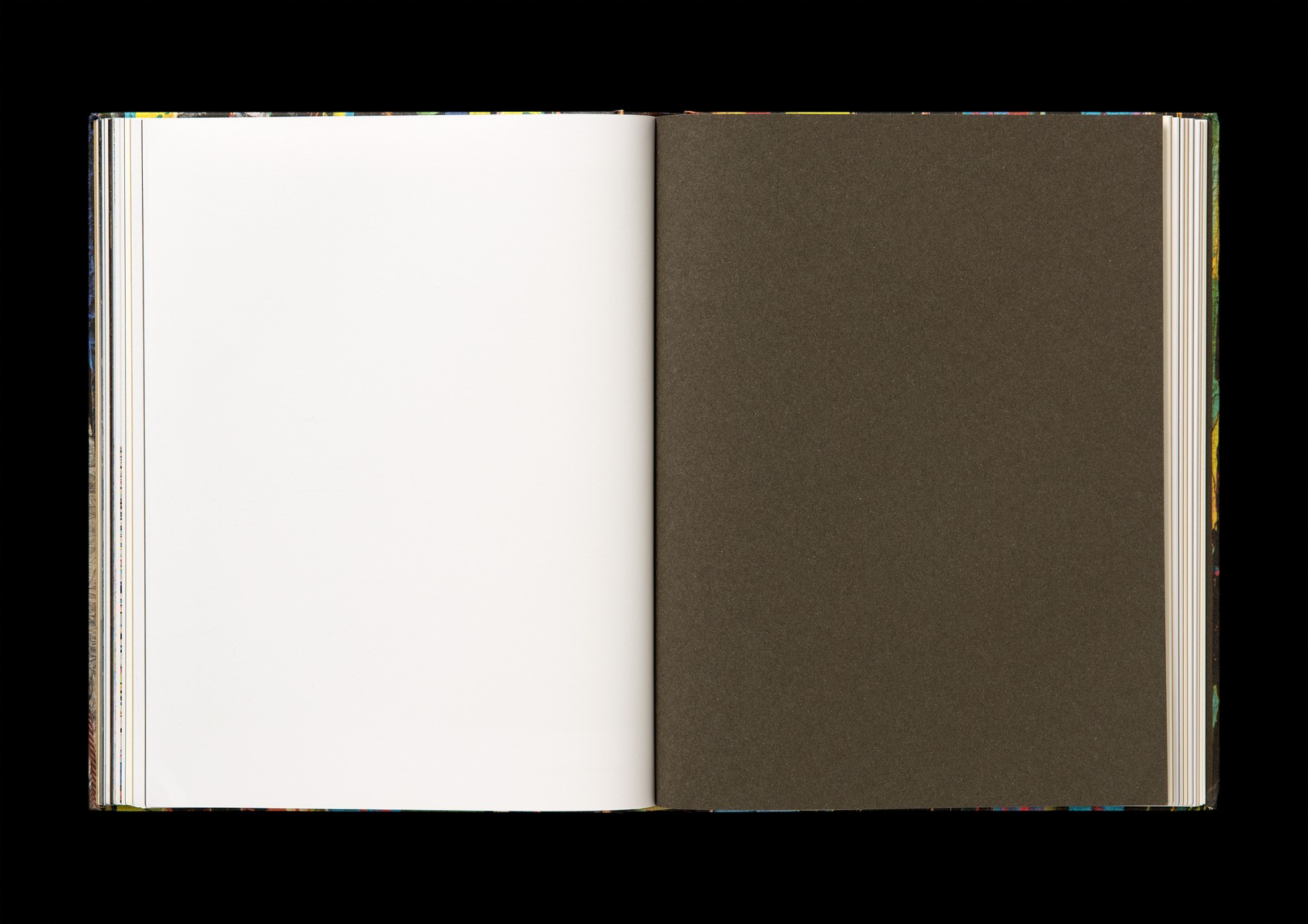 Hardcover, 256 pages, 235x295 mm. 11 glued-in sheets with screen printed quotes. Foil stamped cover with offset-printed image. Content printed in offset. (2024–2025)