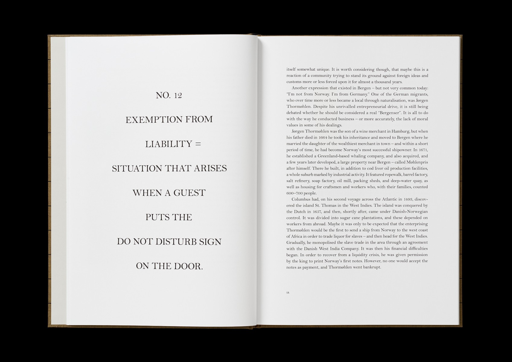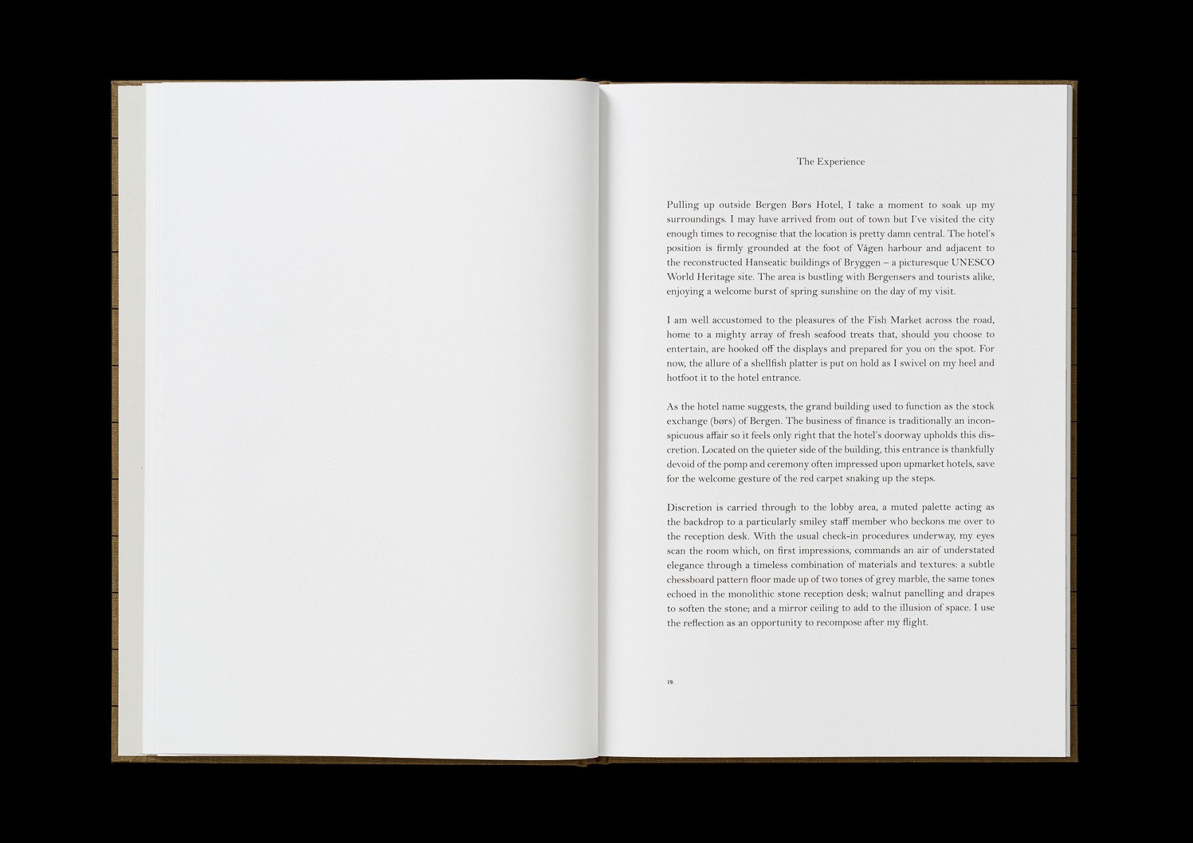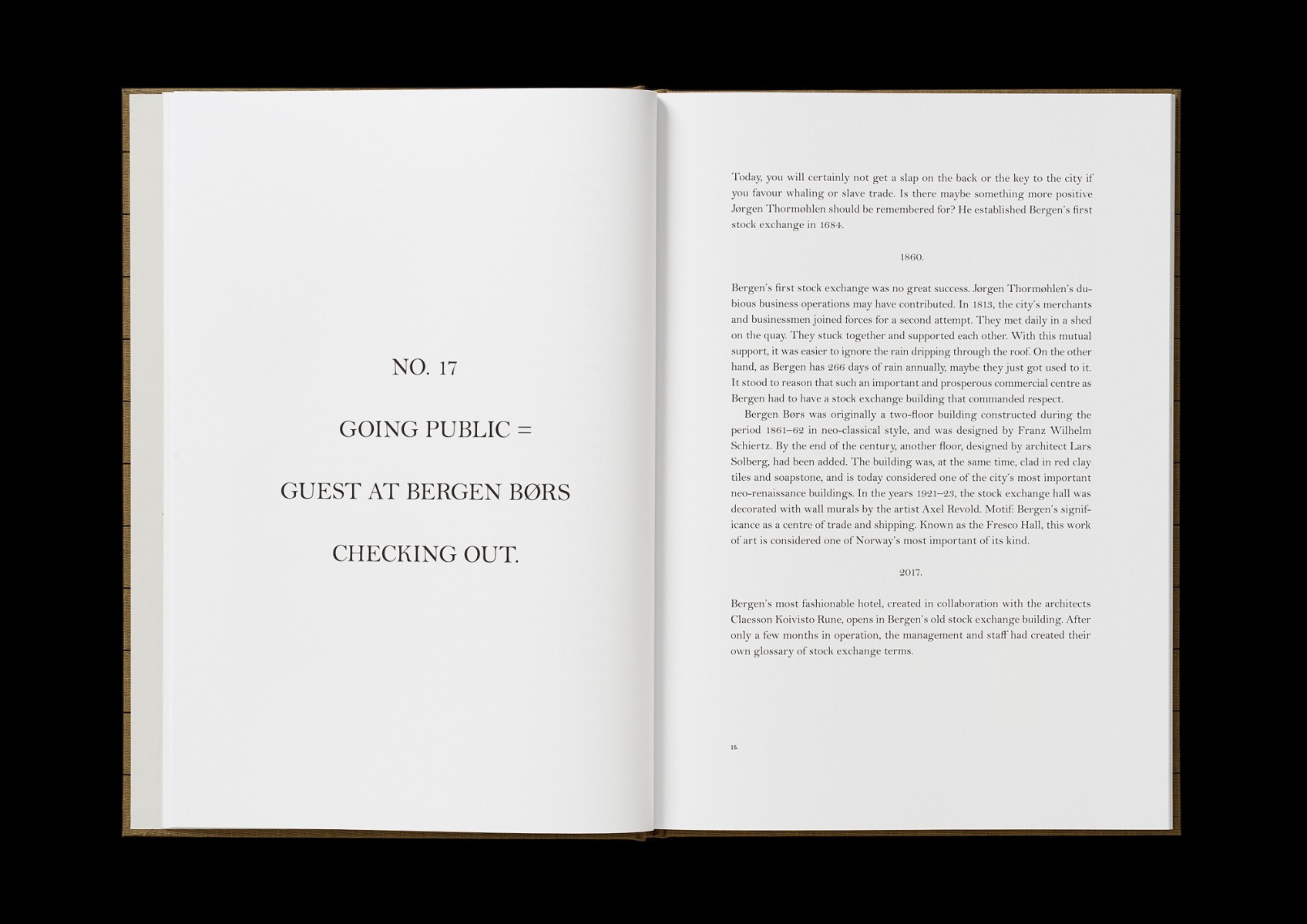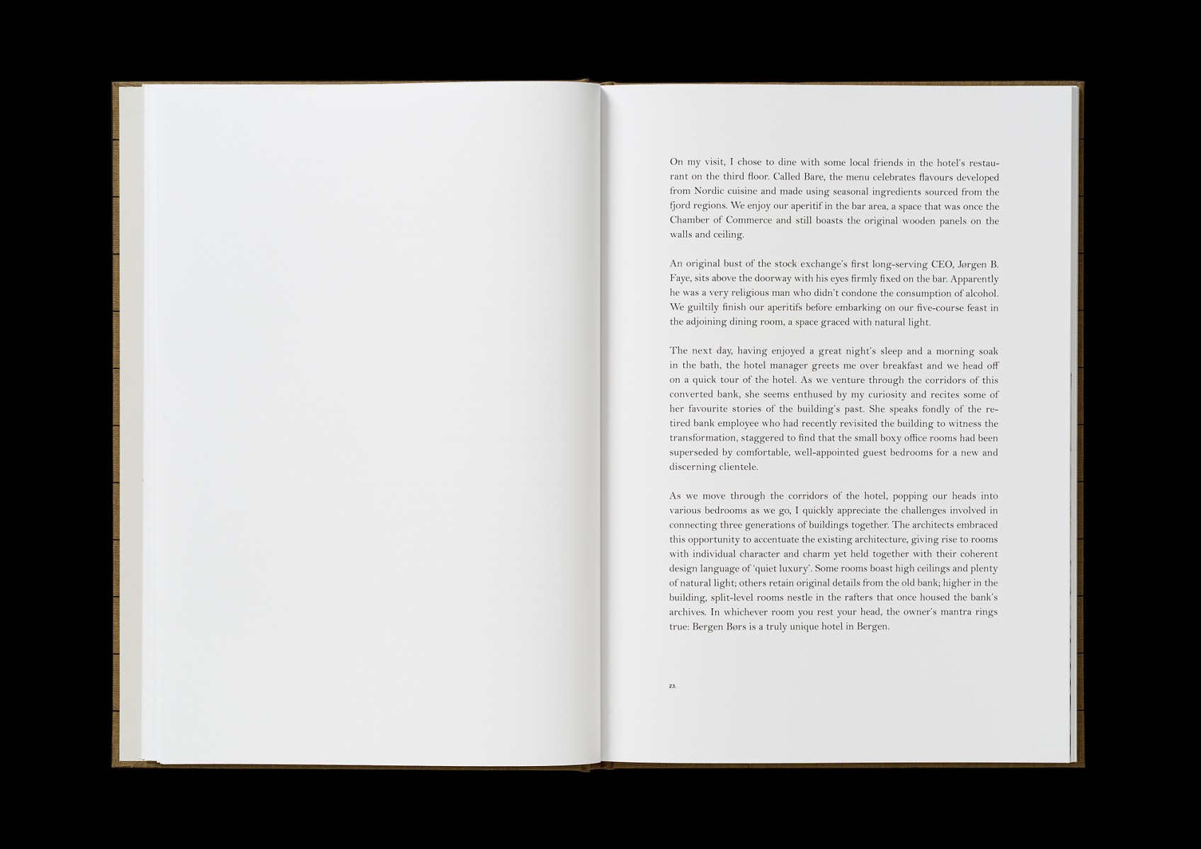 The book Hotel Bergen Børs, A Truly Unique Hotel in Bergen commissioned by the hotel company De Bergenske (Norway).