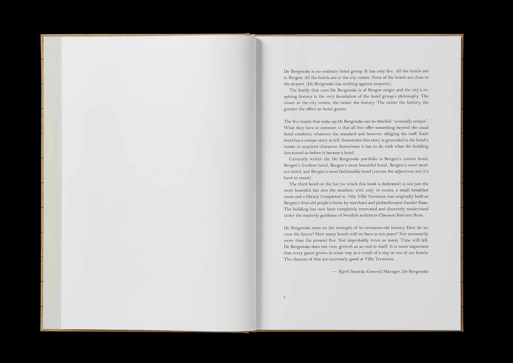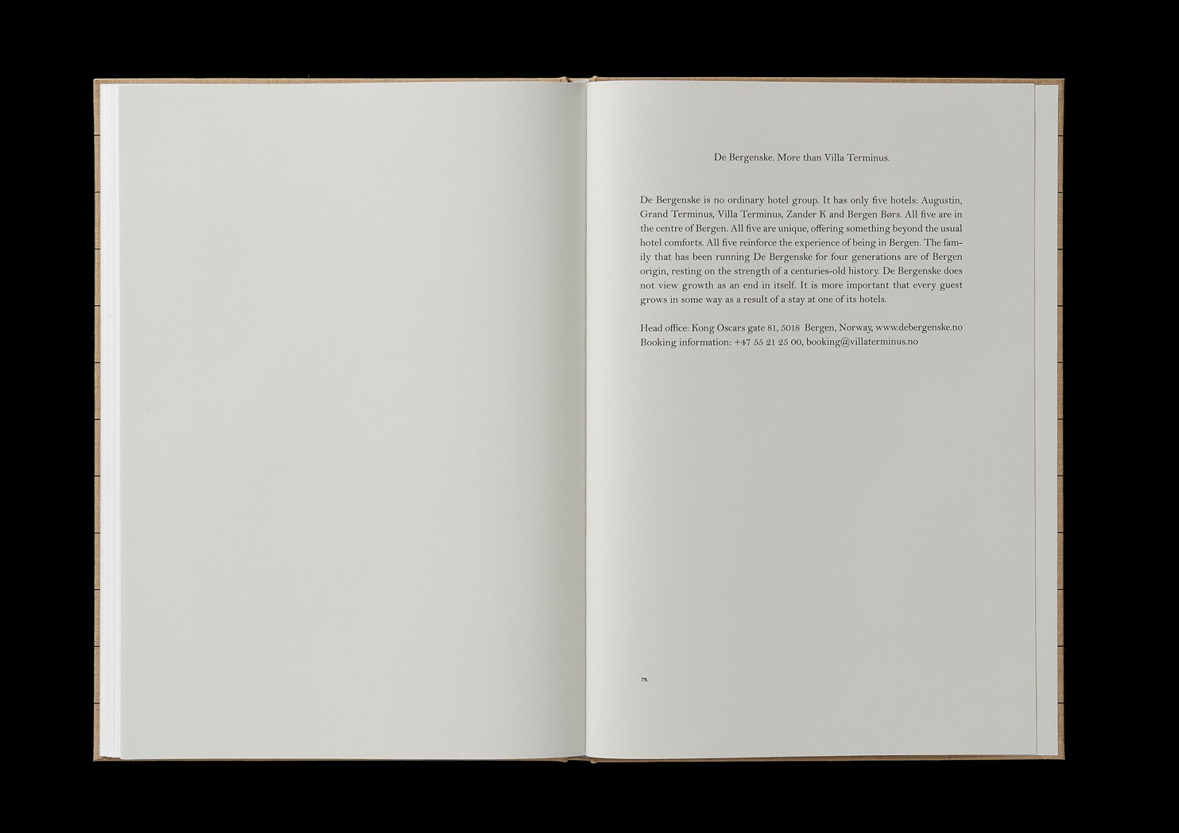 The book Villa Terminus, A Truly Unique Hotel in Bergen commissioned by De Bergenske (Norway).