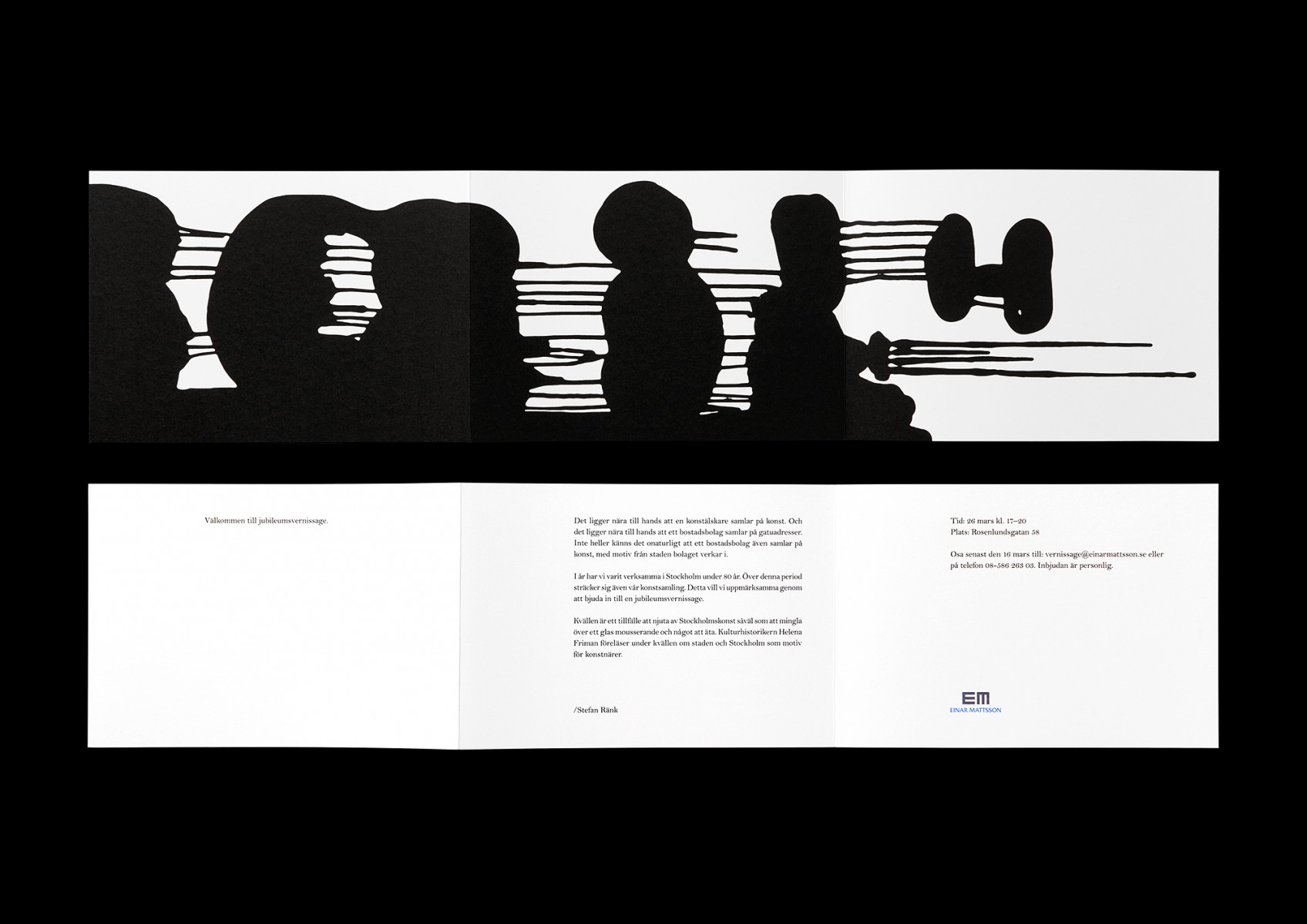Invitation for the jubilee exhibition opening and book release of Provenance: Rosenlundsgatan 58 commissioned by the construction and real estate company Einar Mattsson.