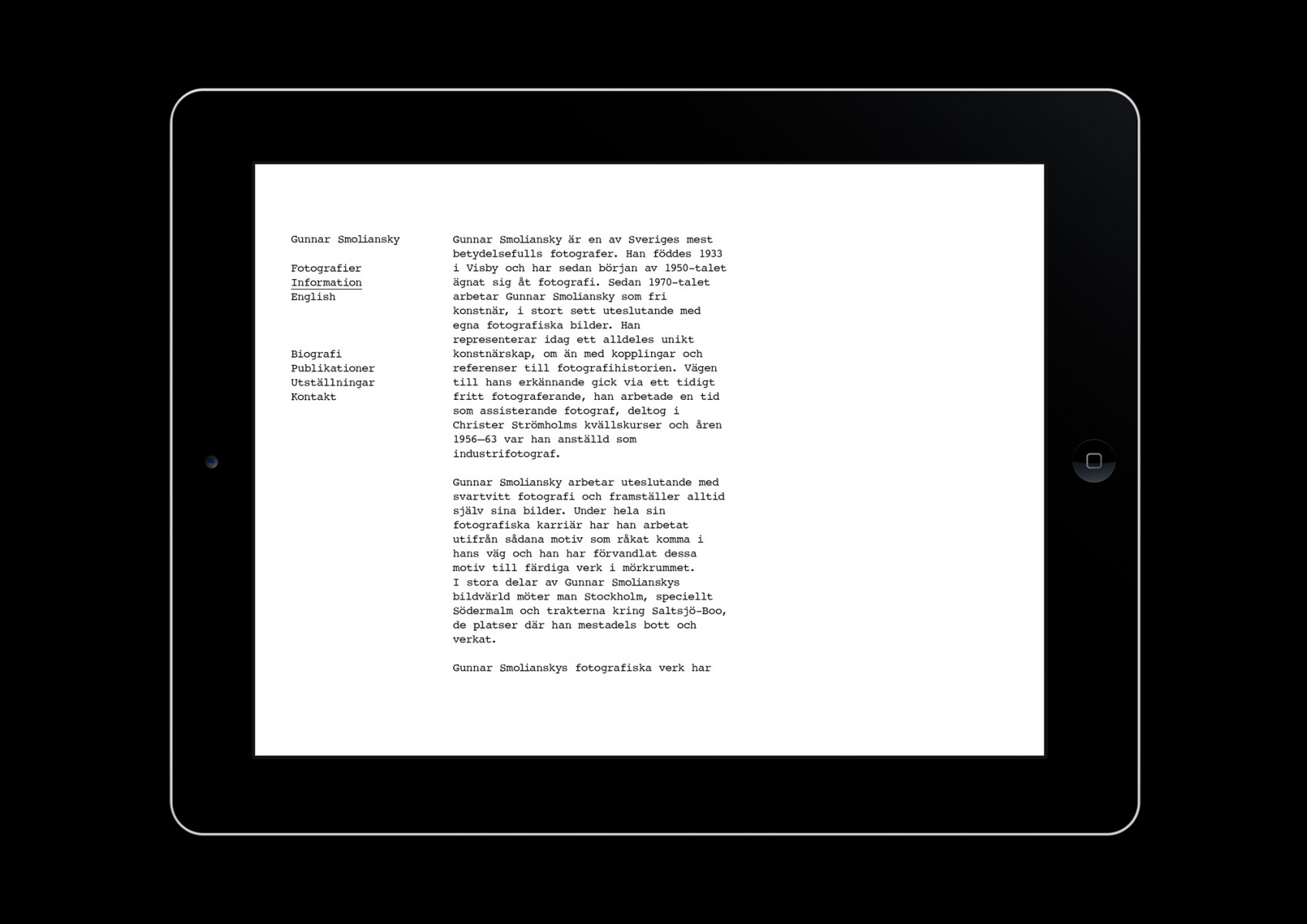 Website for photographer Gunnar Smoliansky in collaboration with Gabriel Duke.