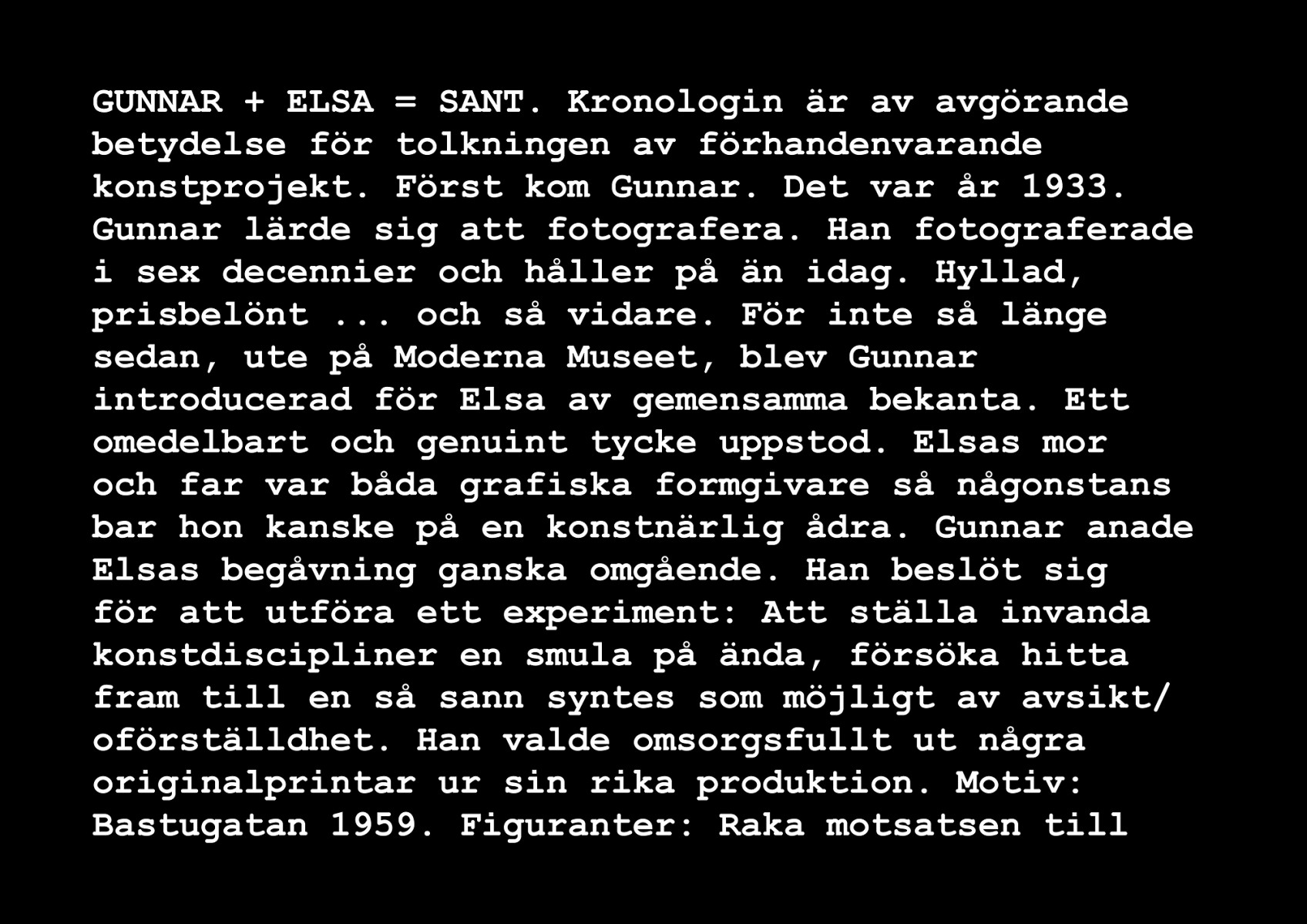 Portfolio for the photographer Gunnar Smoliansky: Gunnar + Elsa = Sant, published by GunGallery in connection with the exhibition at GunGallery, Stockholm, 2009.