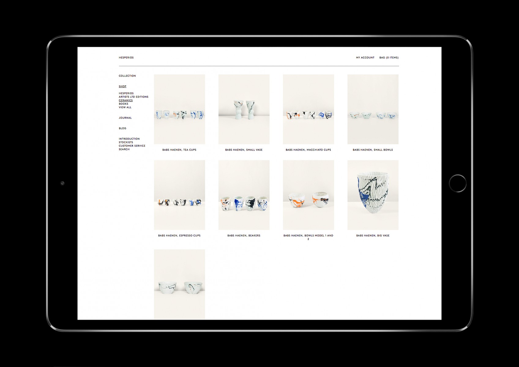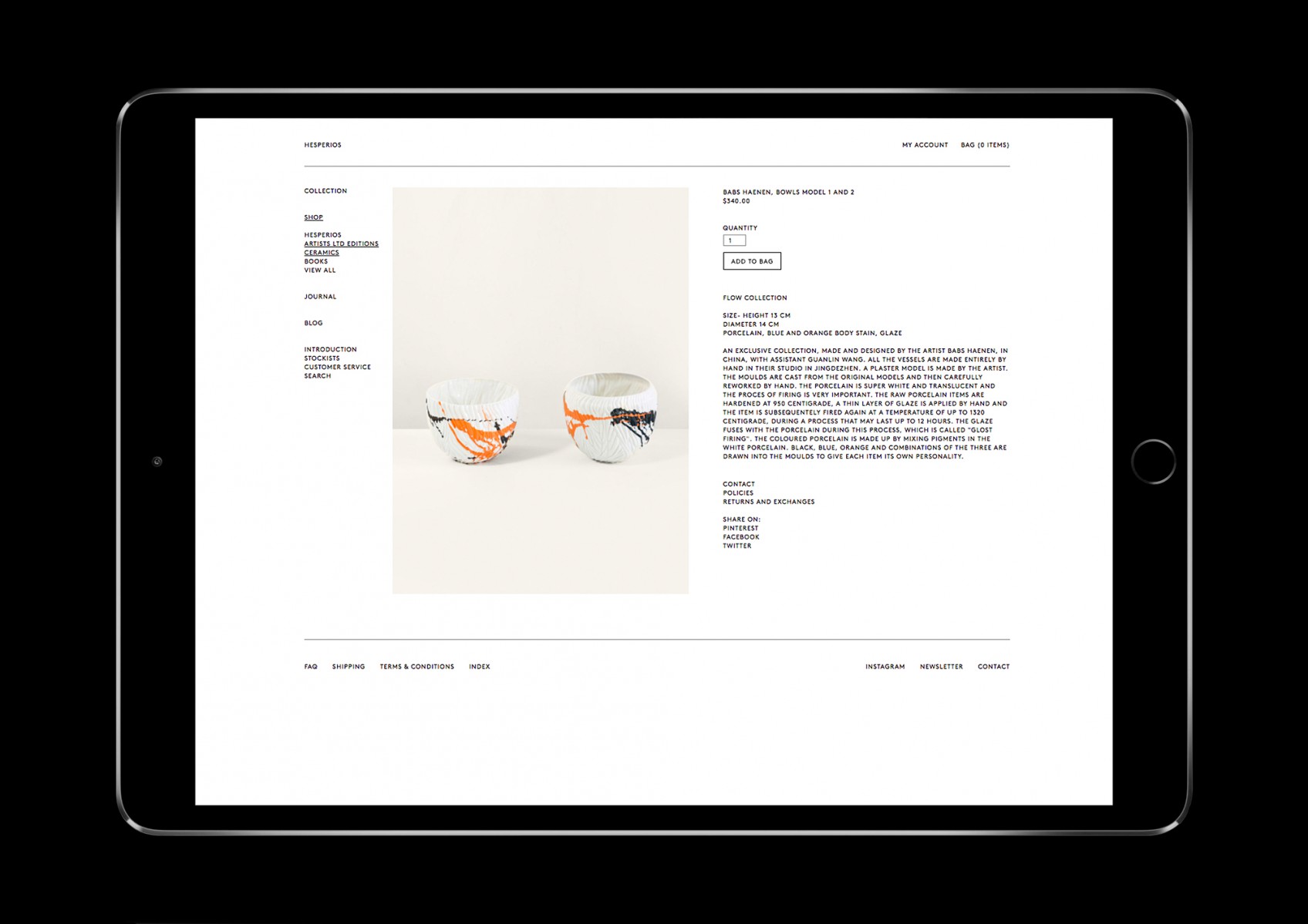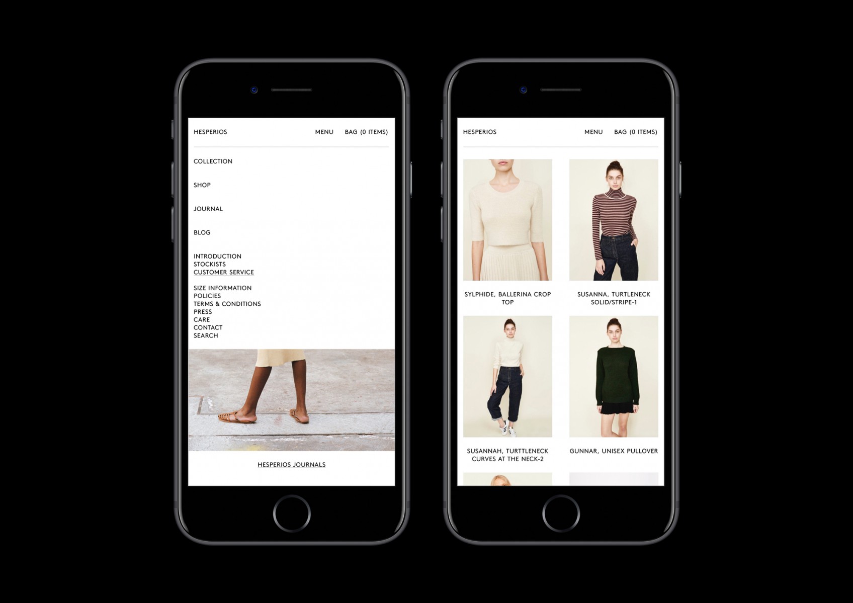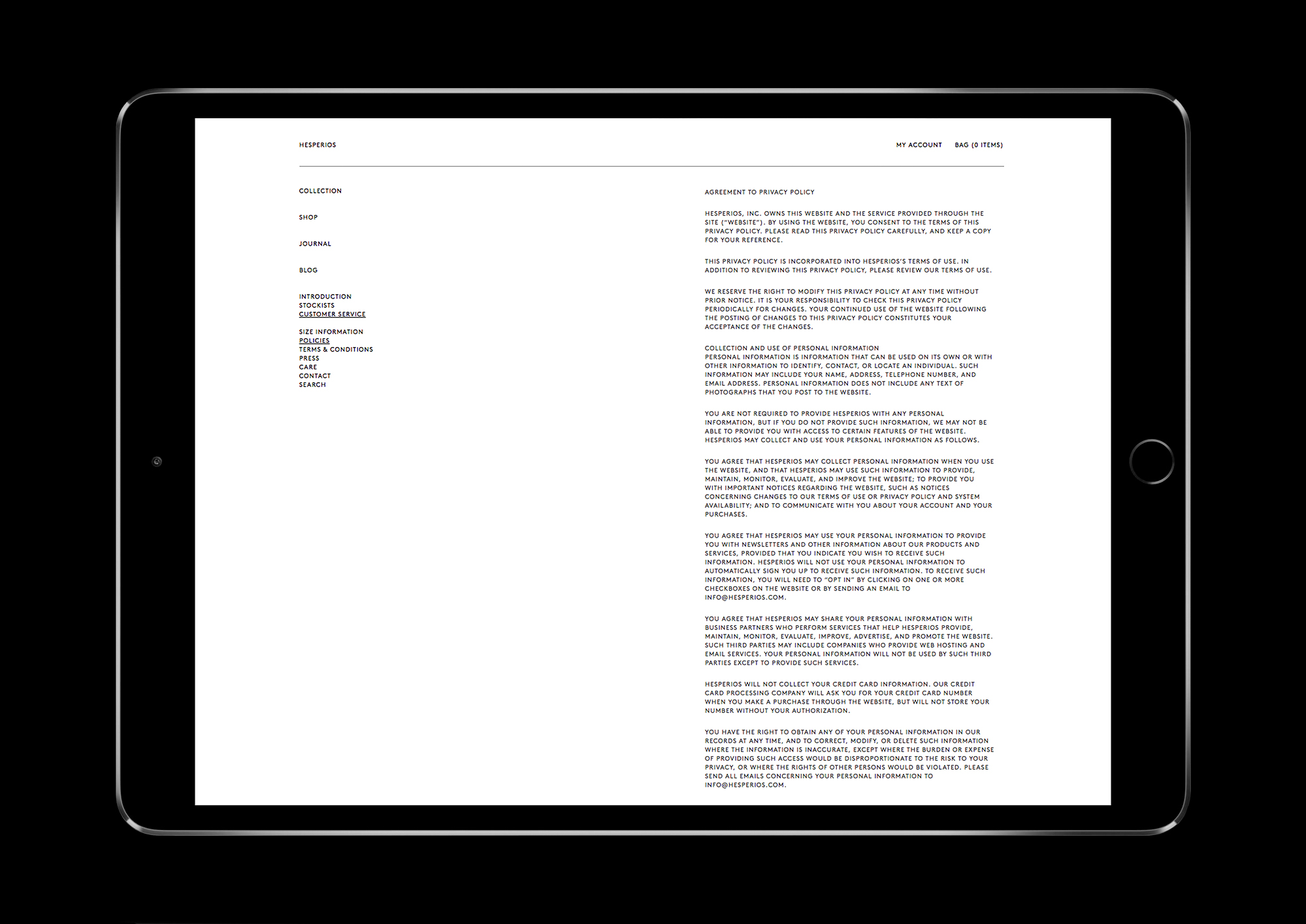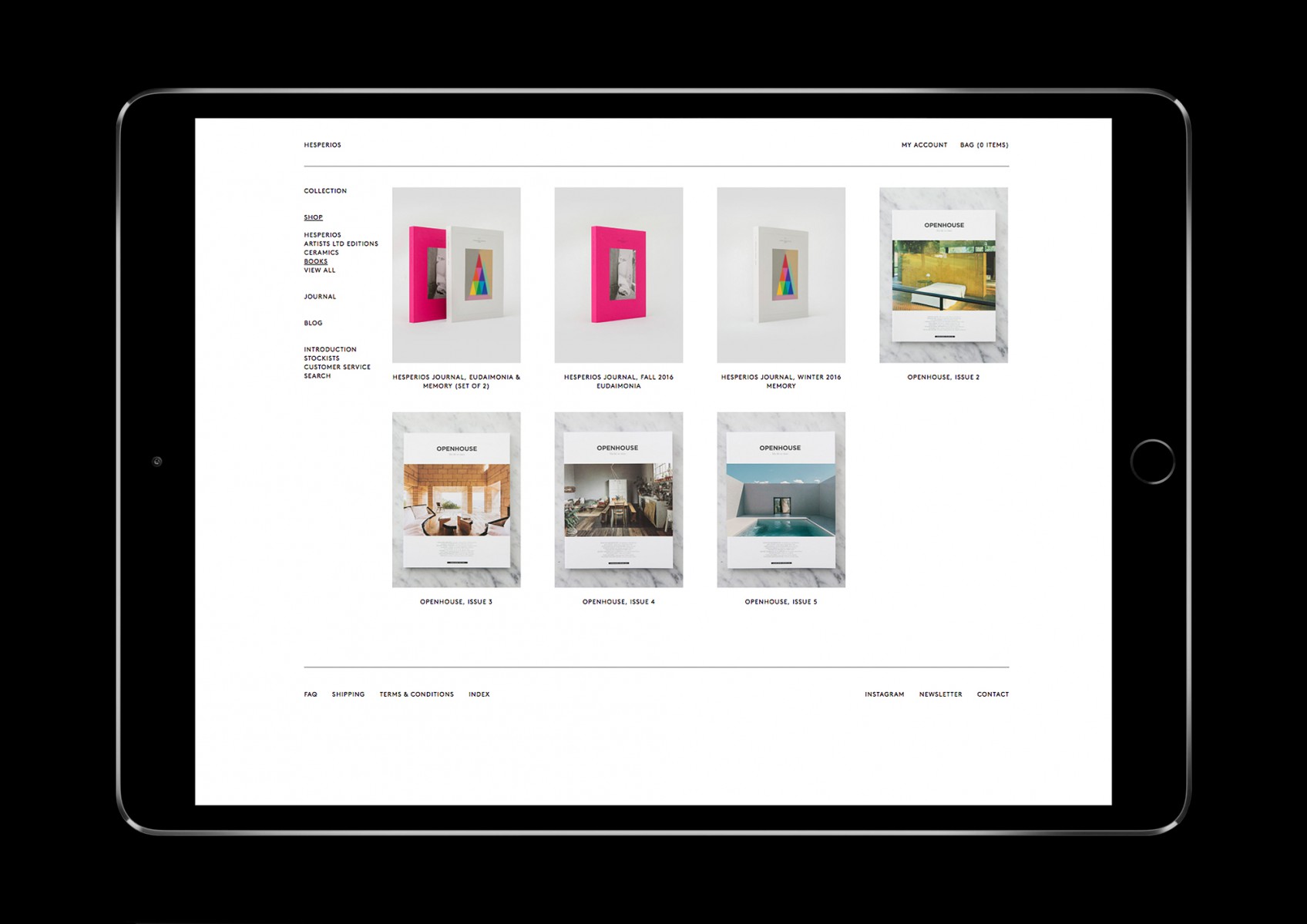 Website commissioned by the American company Hesperios in connection with the release of its first cloth collections, the Hesperios Journal, a series of product, etc.