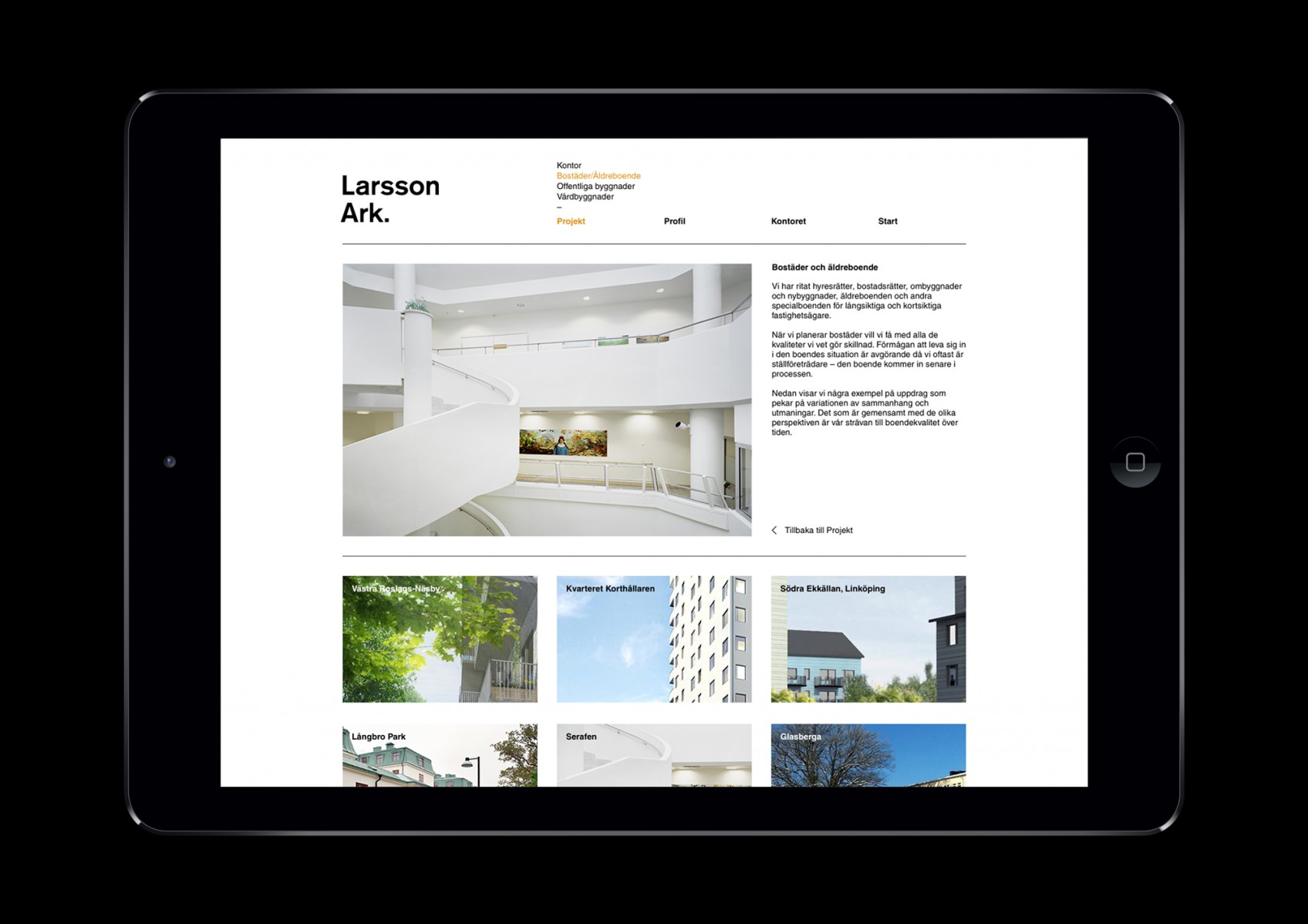 Website for Larsson Arkitekter, Stockholm.