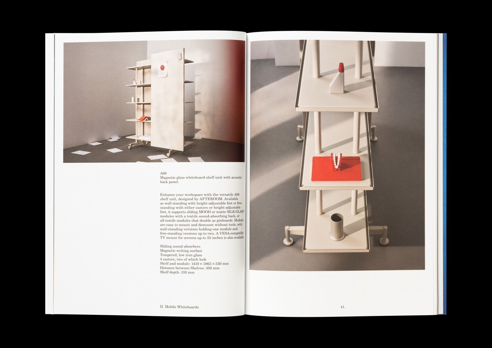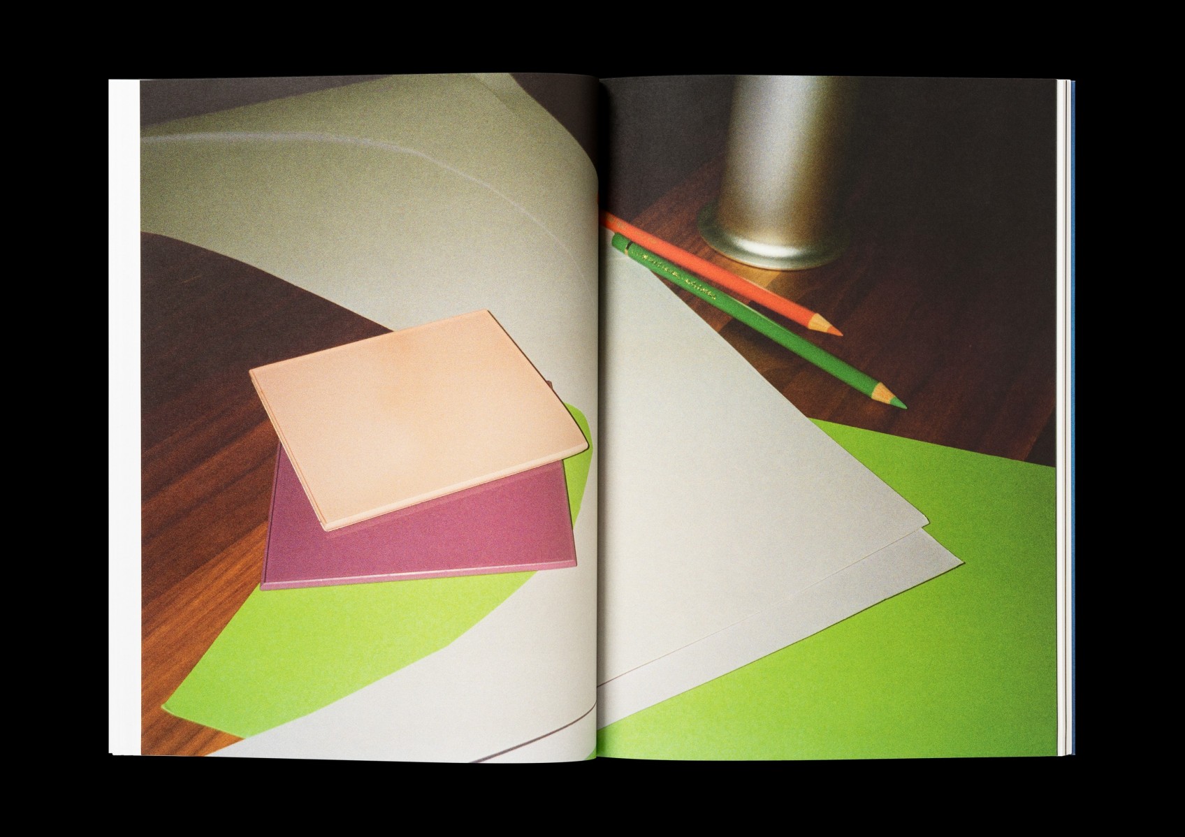 Soft bound with a four page foldout, 88 pp. (American edition, 72 pp.), 239x338 mm, offset. Appendix, 8 pp., 210x297 mm, offset, stapled. Screen printed carton for transportation with adress labels. (2025)
