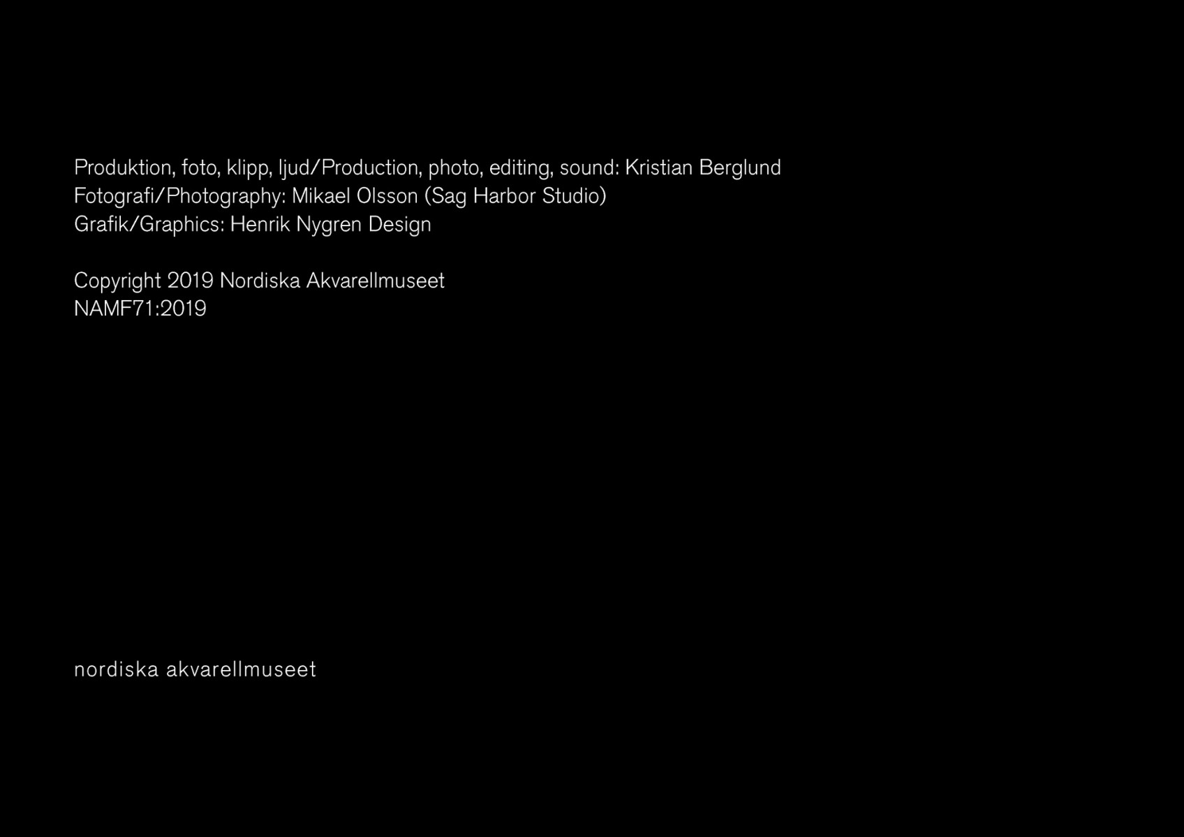 Production, photography, editing and sound: Kristian Berglund. Photography from Sag Harbor Studio: Mikael Olsson. (2018–2019)