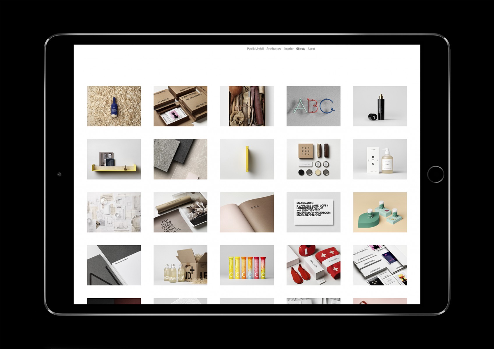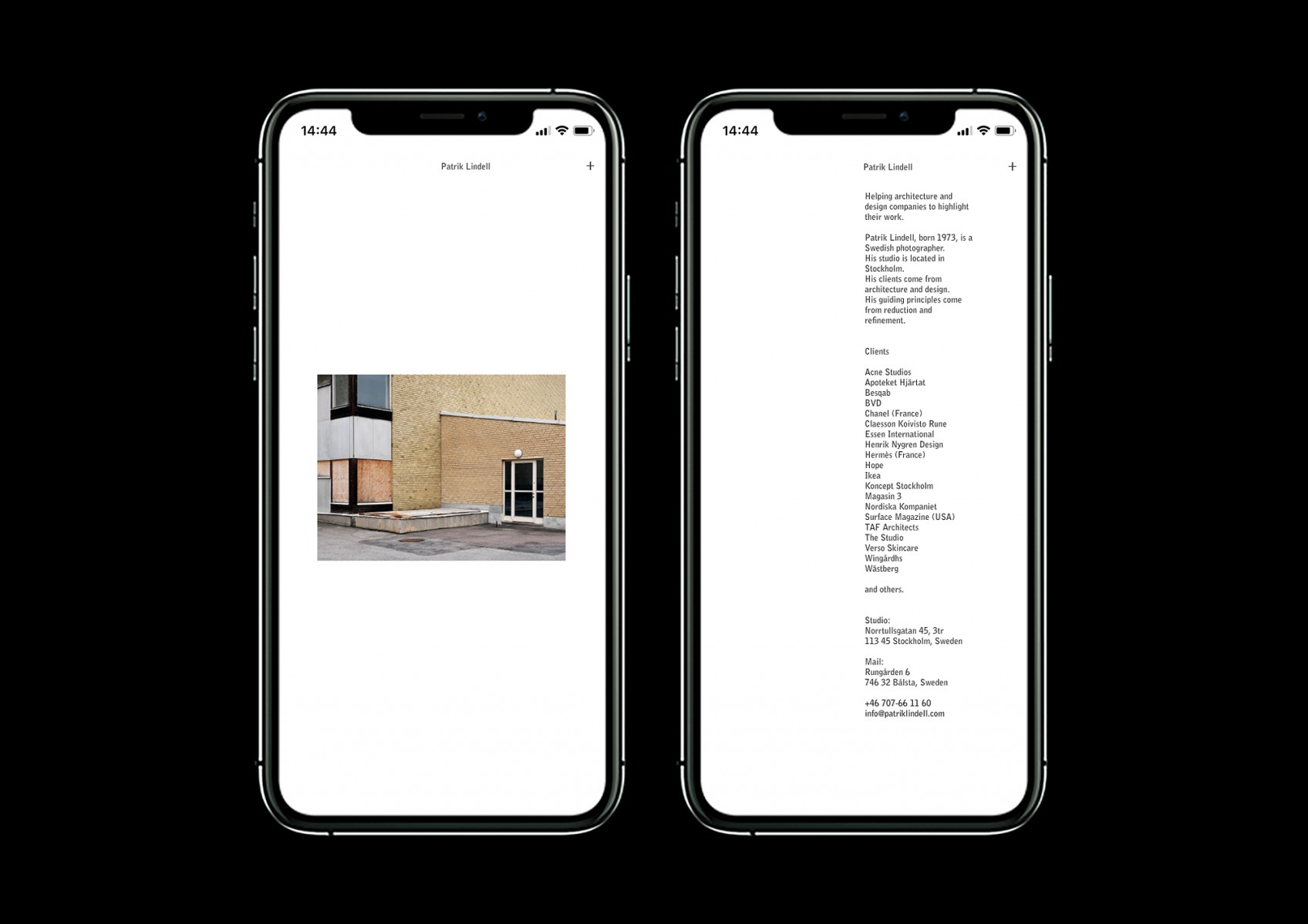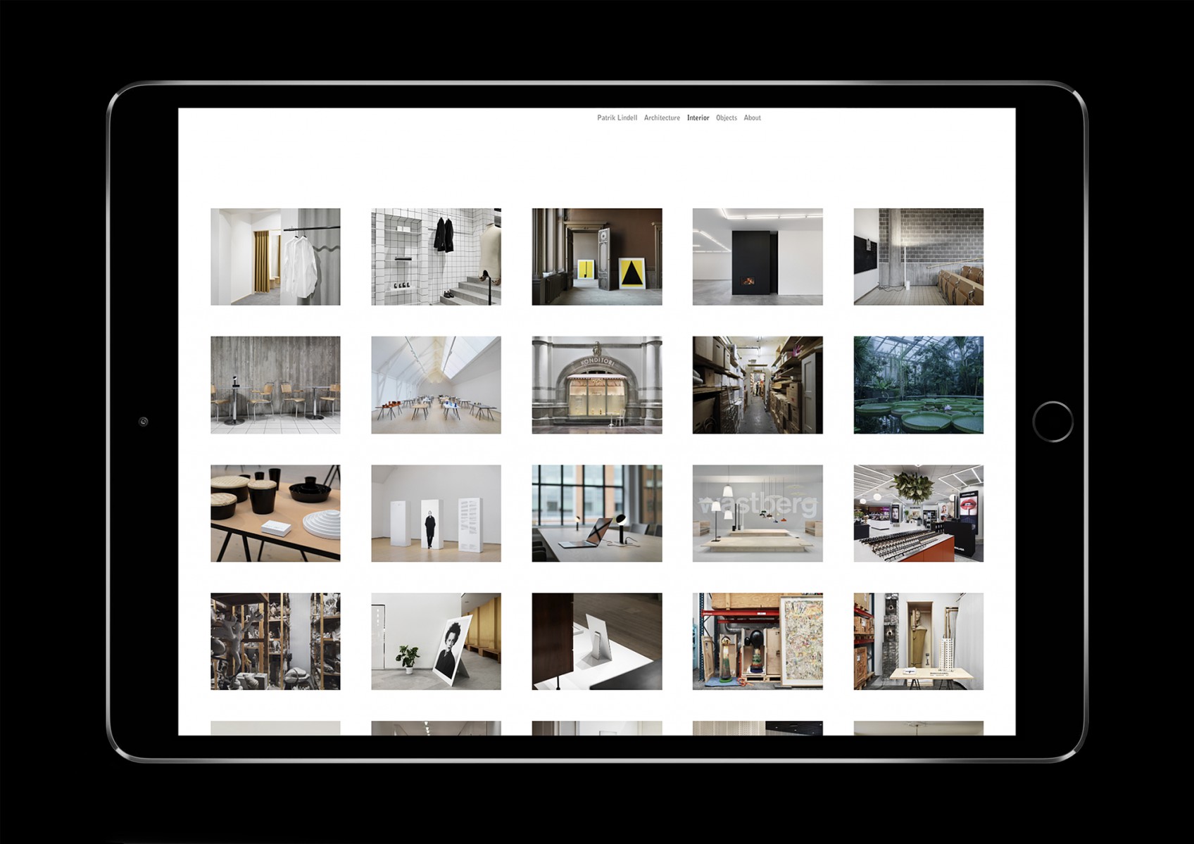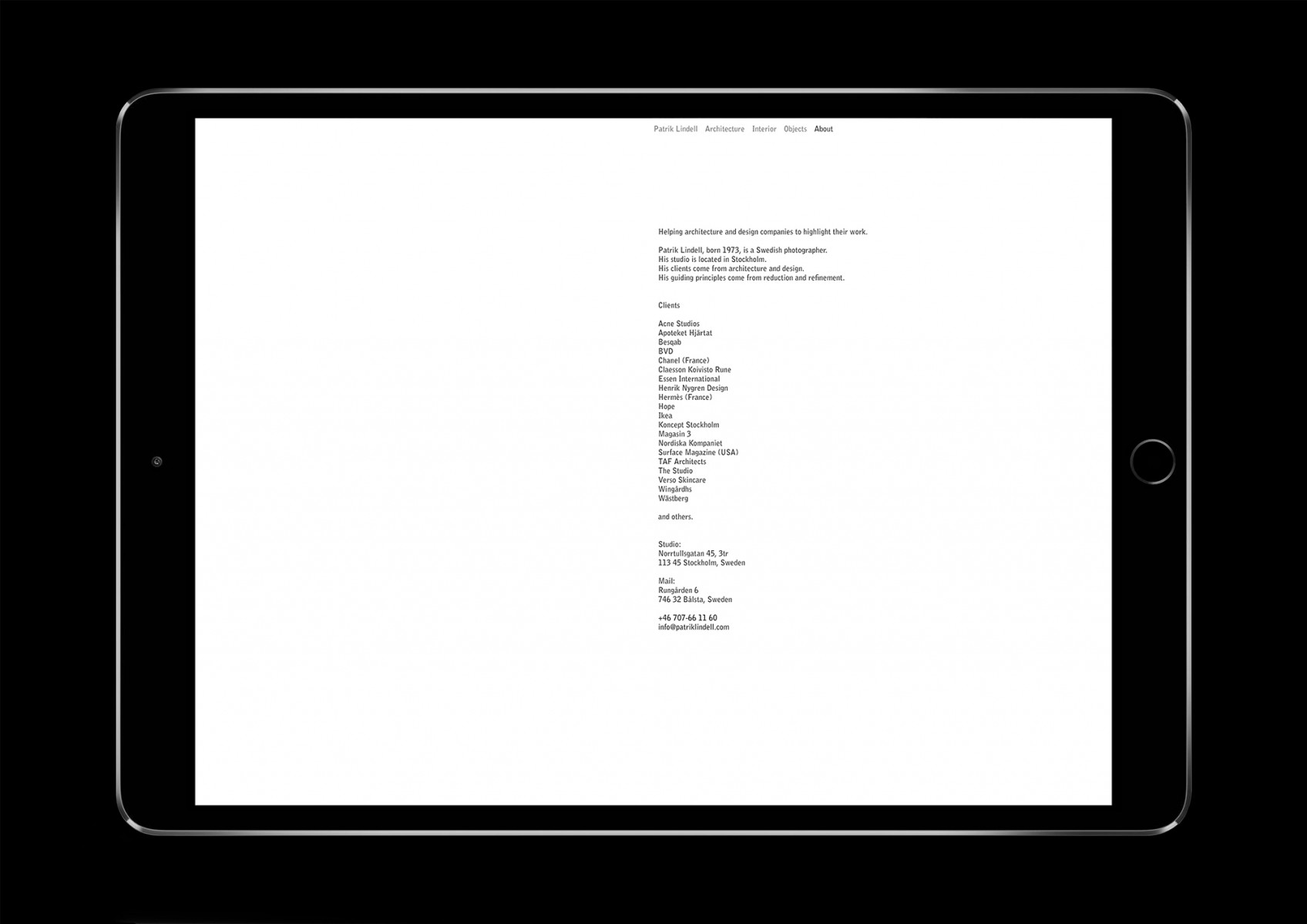 Website for architecture and still-life photographer Patrik Lindell.