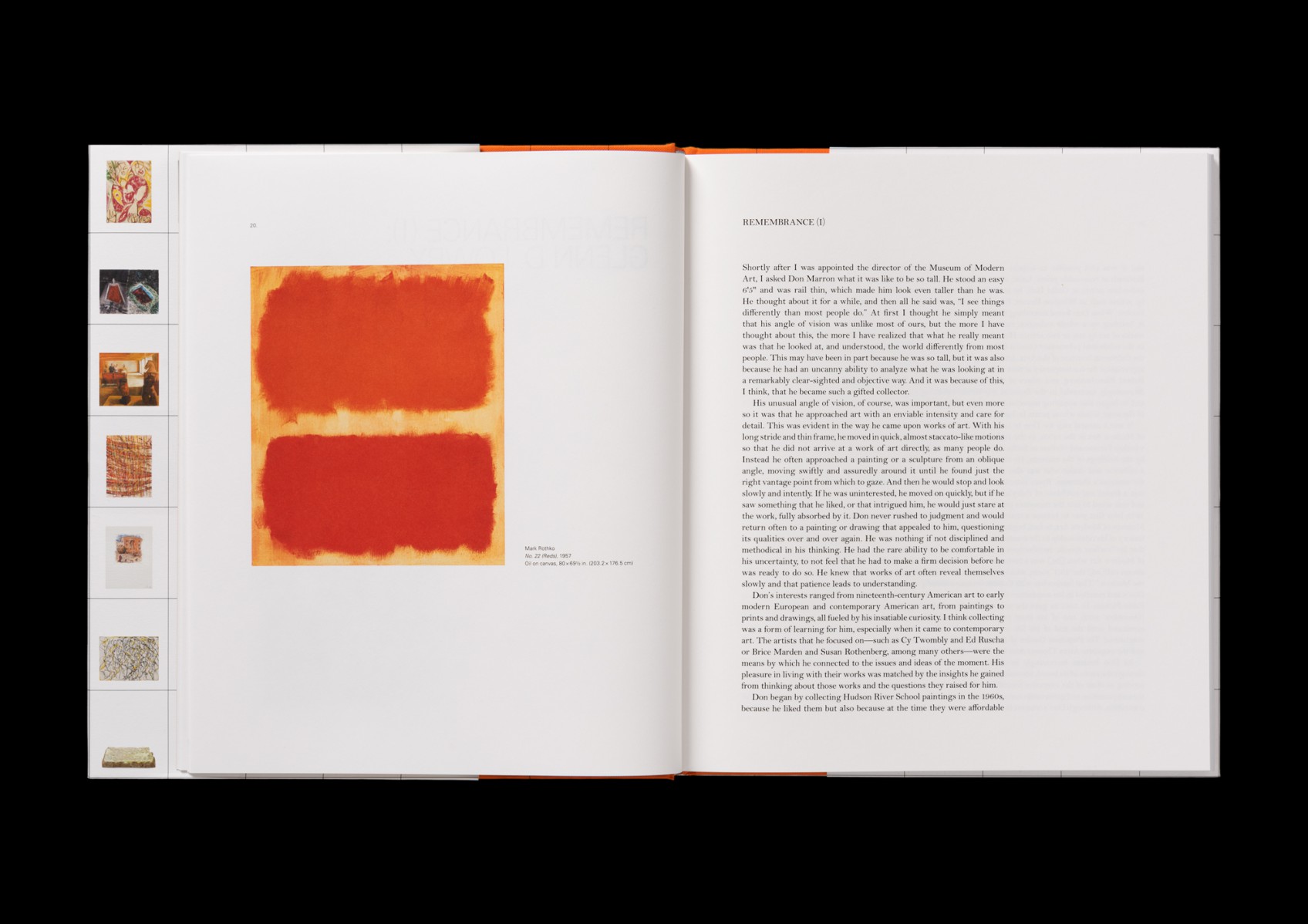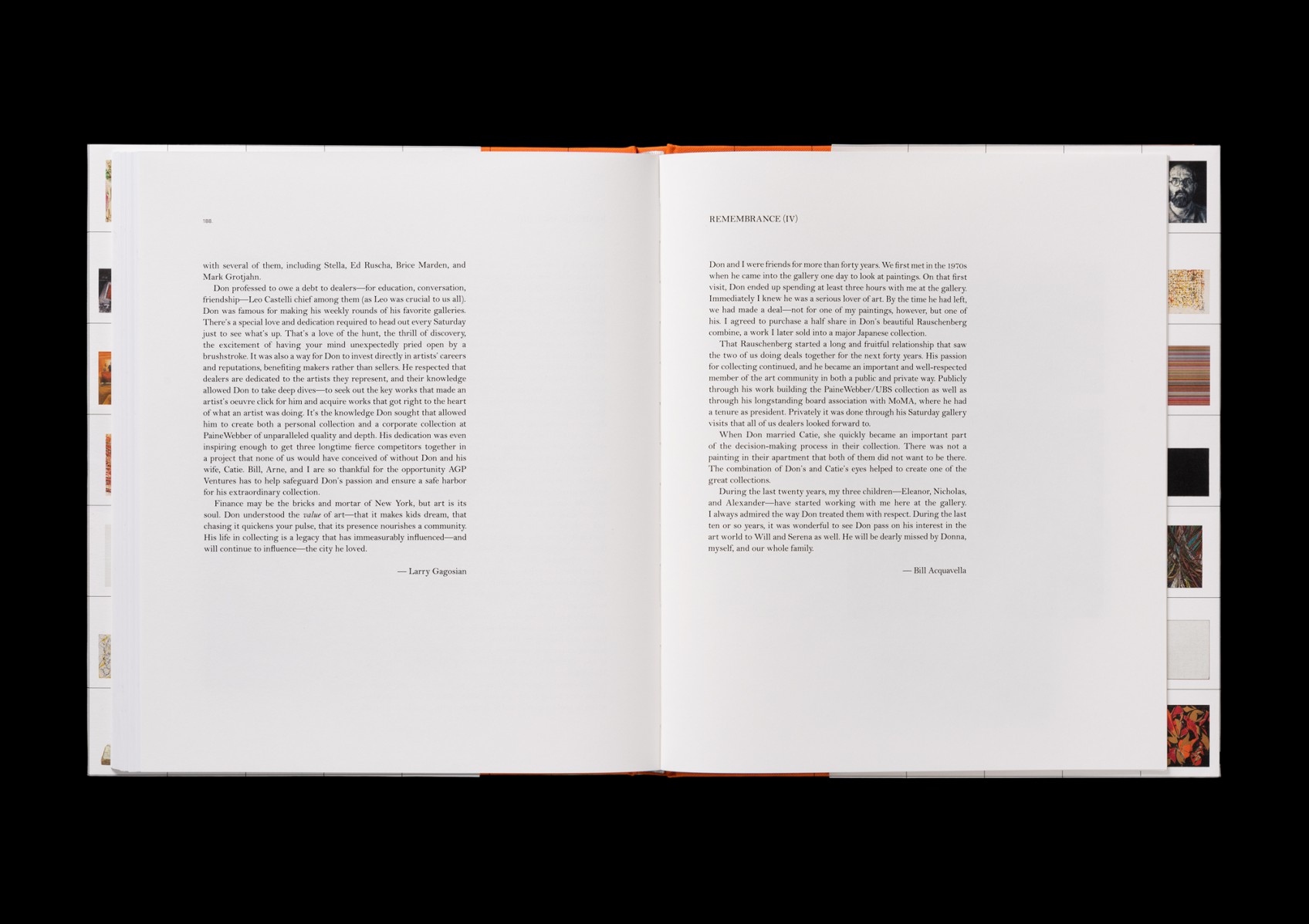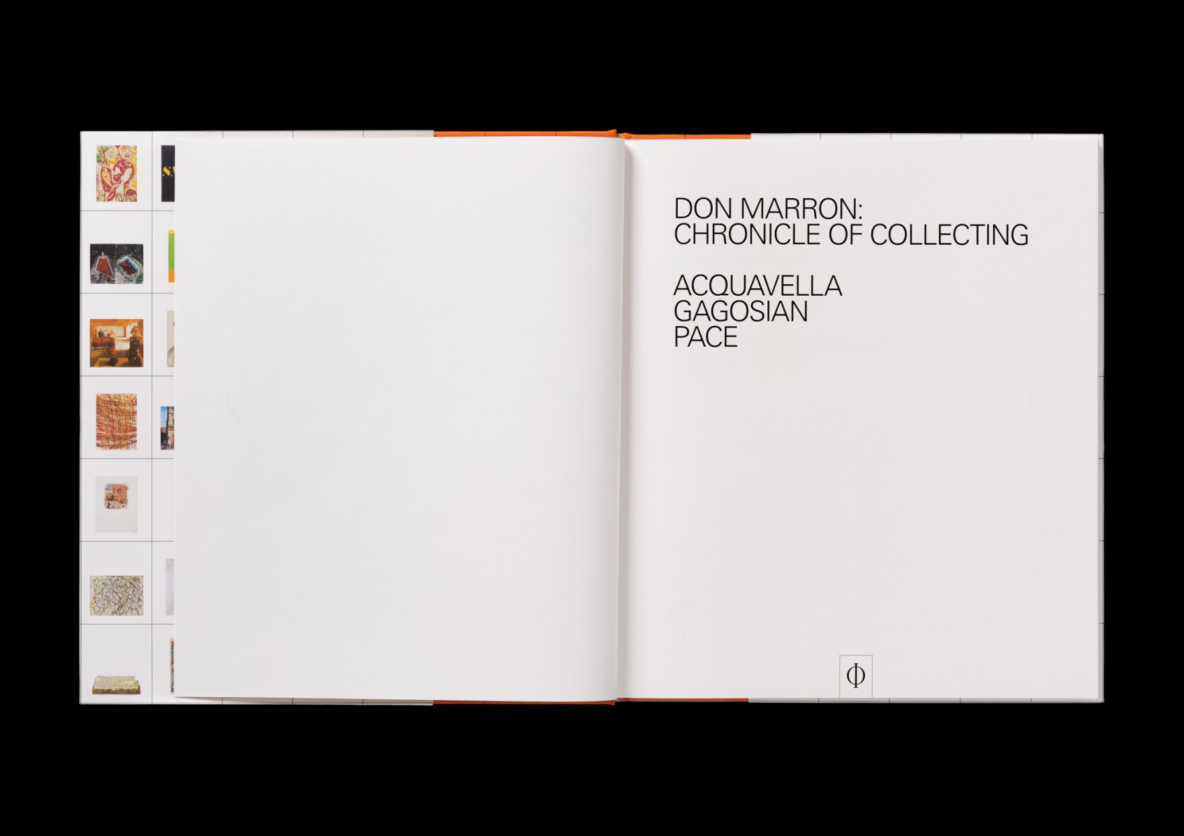 The book Don Marron: Chronicle of Collecting on the financier and philanthropist Donald B. Marron (1934–2019) and his art collection commissioned by Phaidon Press (England) in conjunction with the exhibitions at Pace Gallery and Gagosian in New York in the spring of 2021.