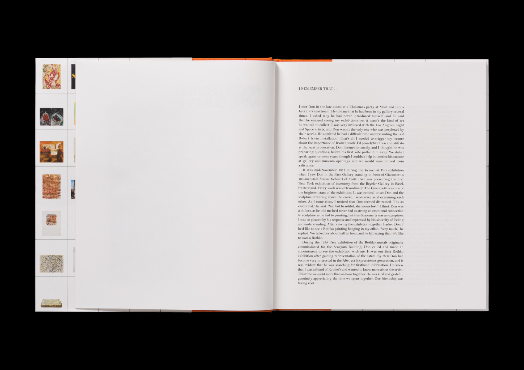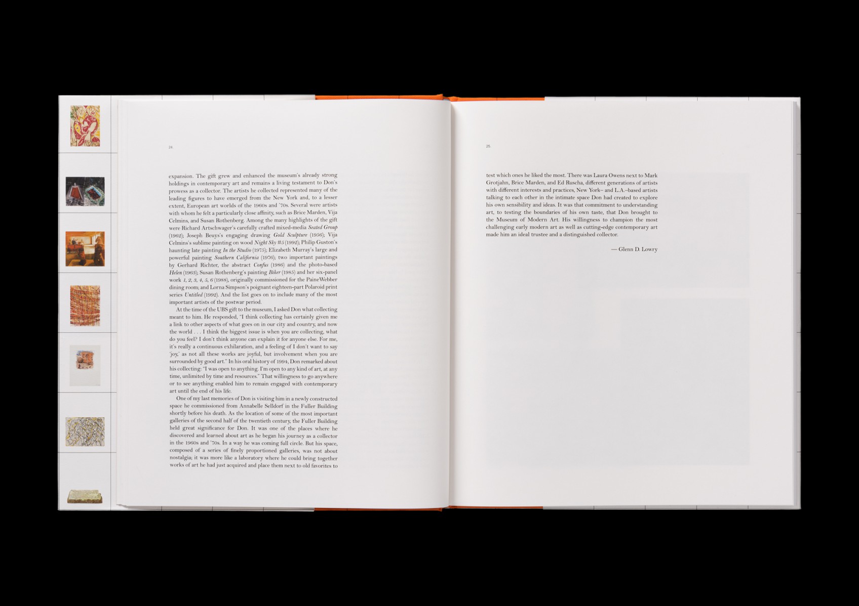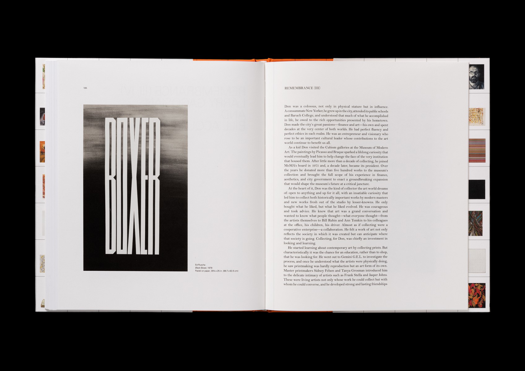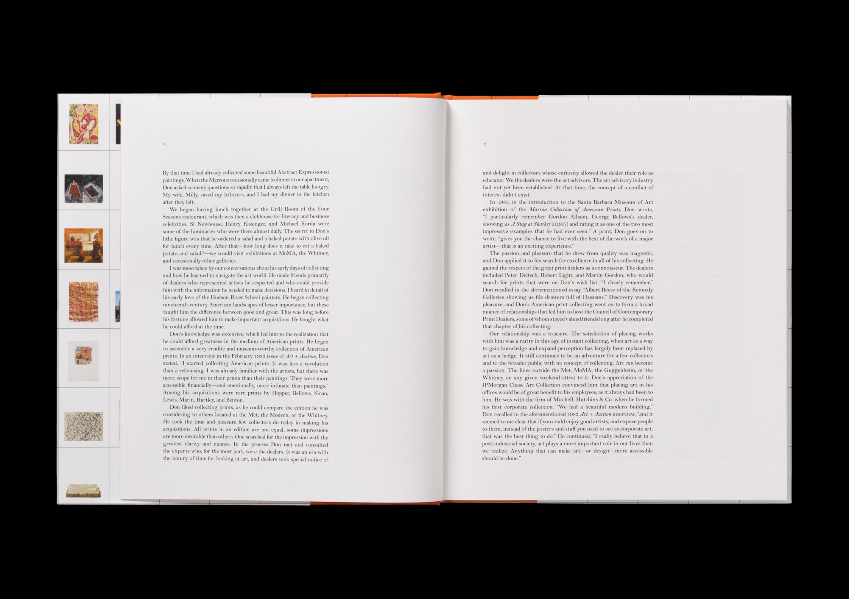 The book Don Marron: Chronicle of Collecting on the financier and philanthropist Donald B. Marron (1934–2019) and his art collection commissioned by Phaidon Press (England) in conjunction with the exhibitions at Pace Gallery and Gagosian in New York in the spring of 2021.