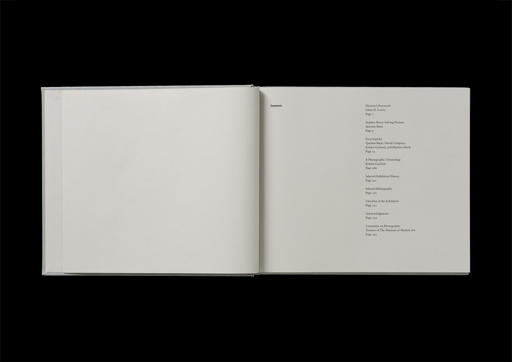 The book Stephen Shore commissioned by The Museum of Modern Art in conjunction with the exhibition, winter and spring 2017–2018.