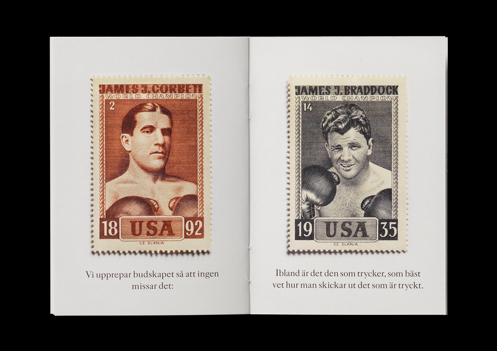 Folder: 240x340 mm, offset. Booklet: stapled, 16 pp., 74x105 mm, offset. Commissioned by TMG Sthlm printers, Bromma. (2012)