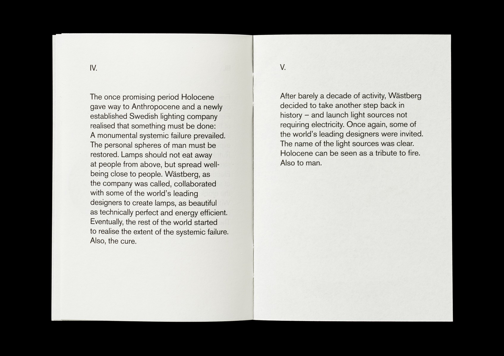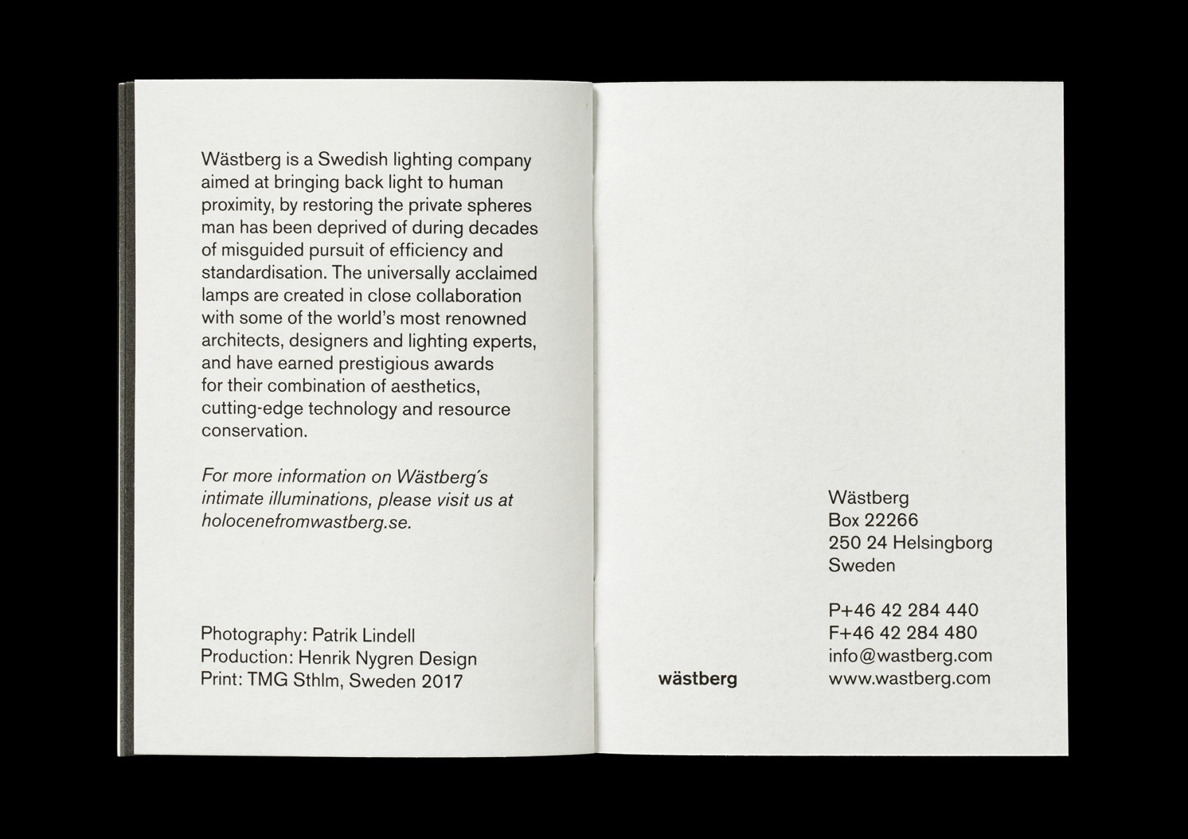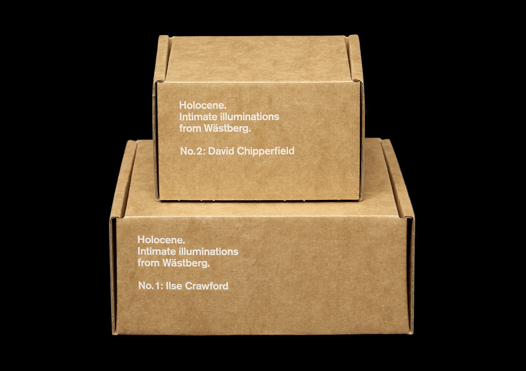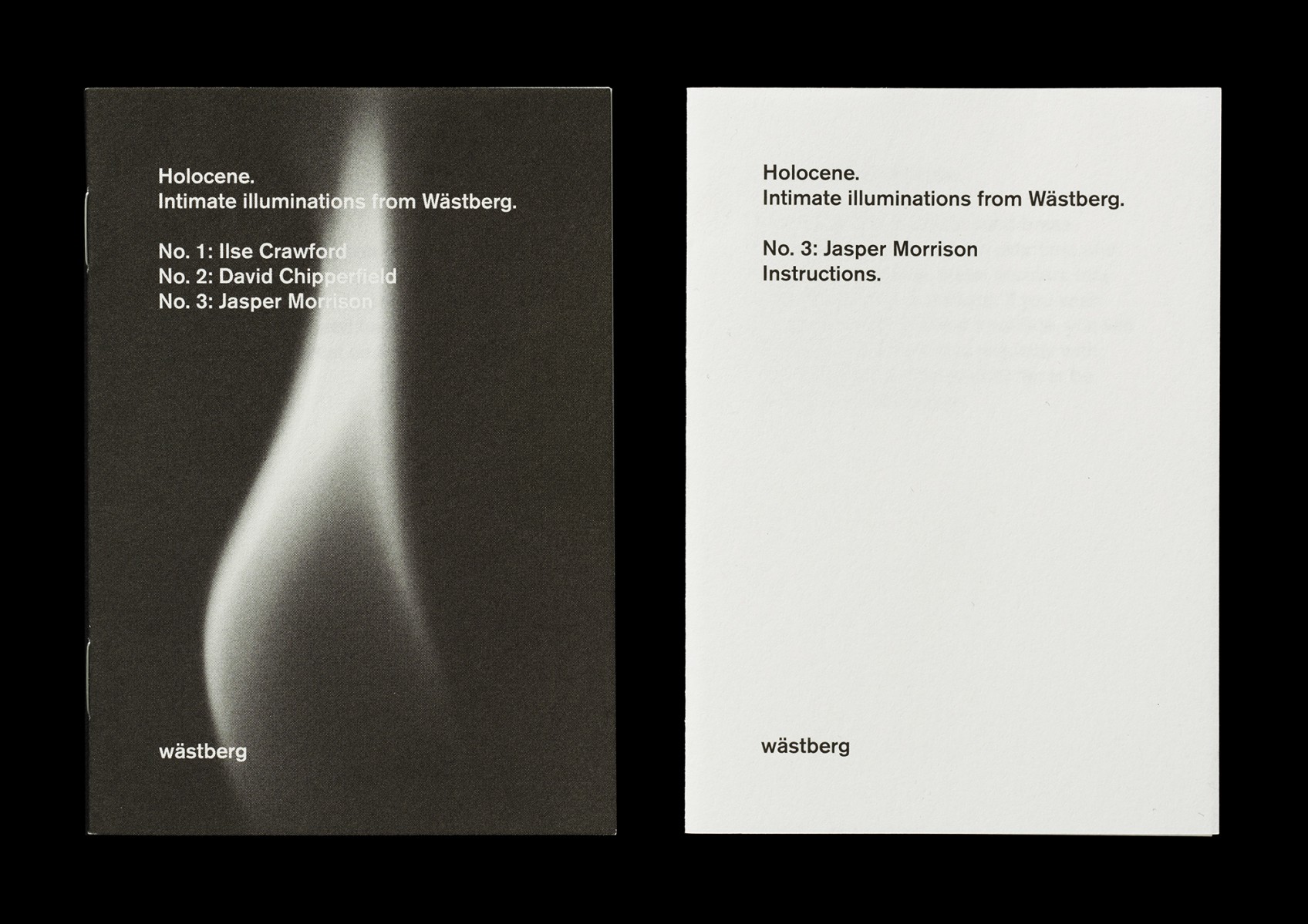 Packaging and printed matter for Holocene, Intimate Illumniations from Wästberg, commissioned by the lighting company Wästberg. Products designed by Ilse Crawford, David Chipperfield and Jasper Morrison.