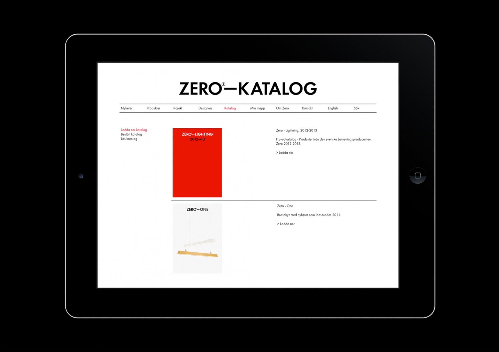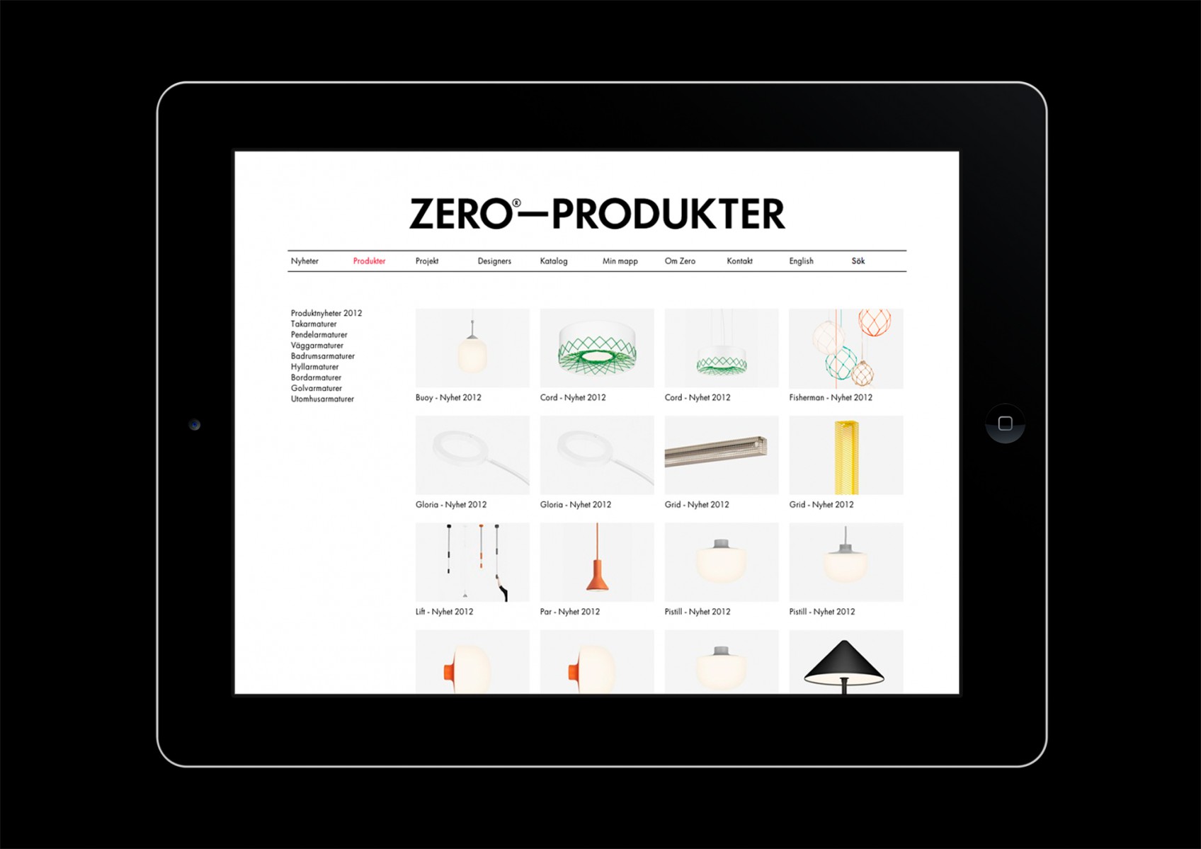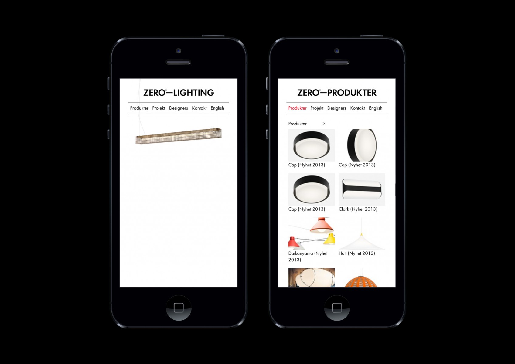 Website for Swedish lighting company Zero.
