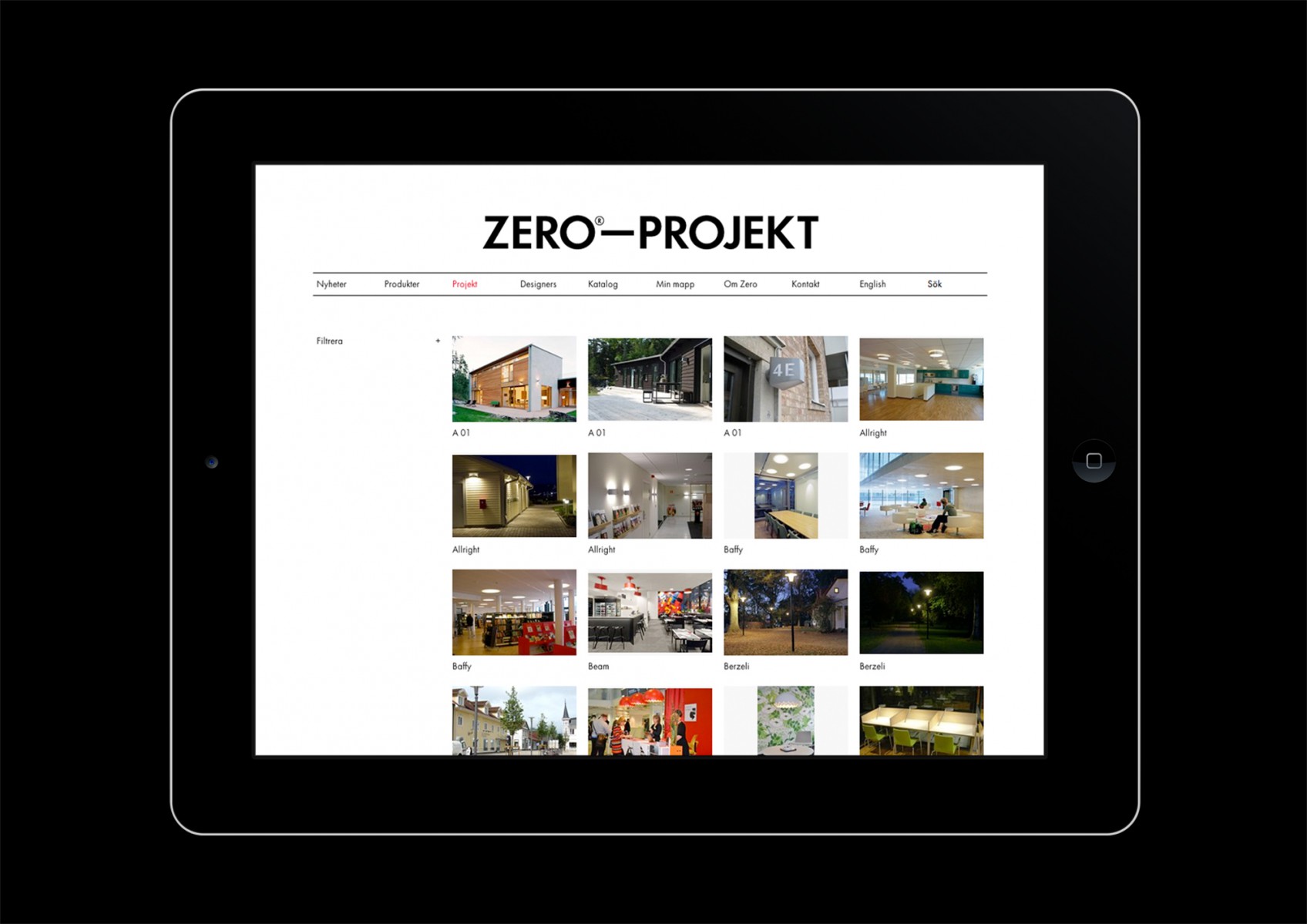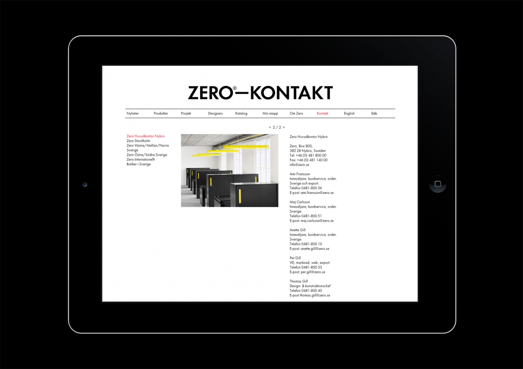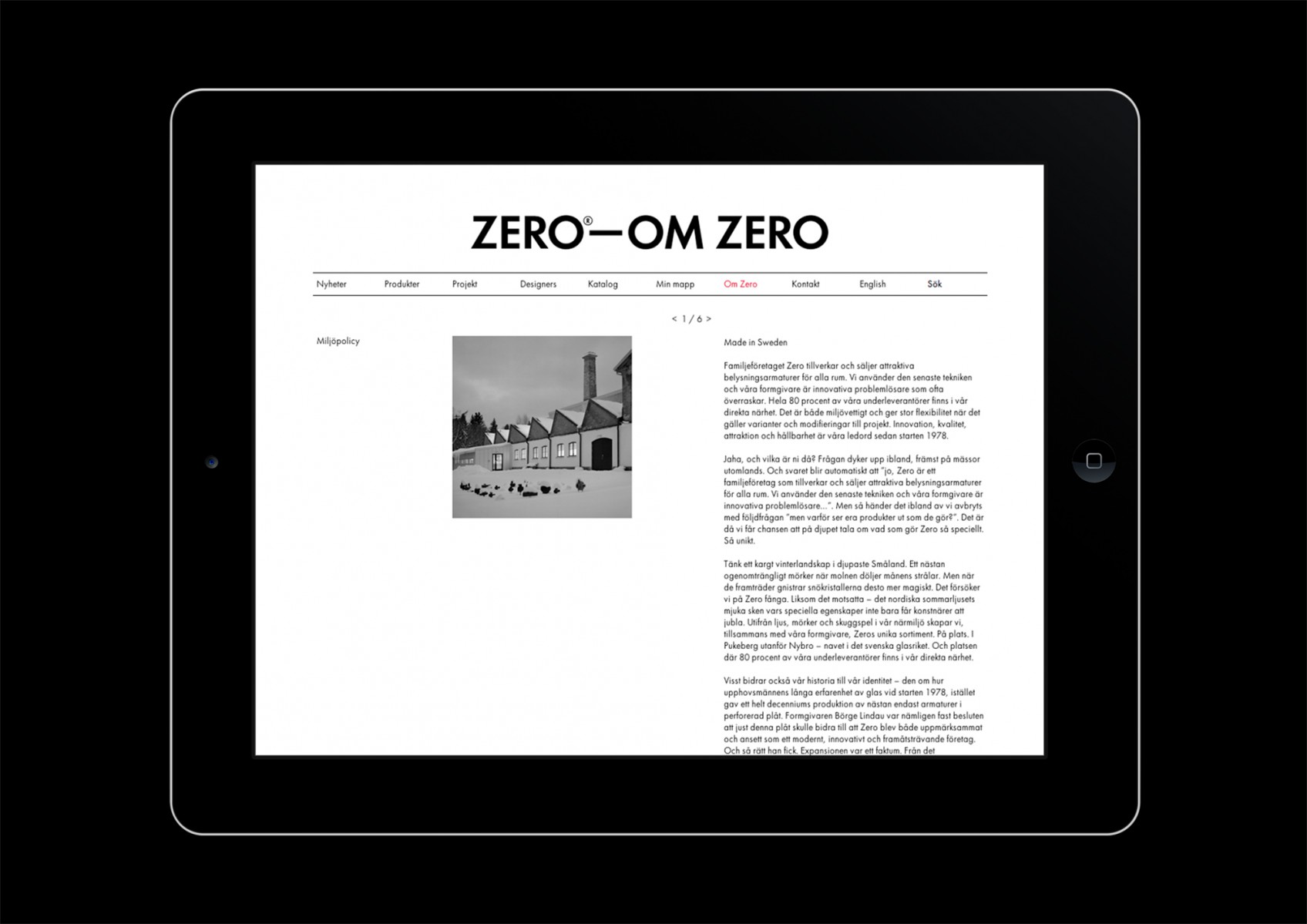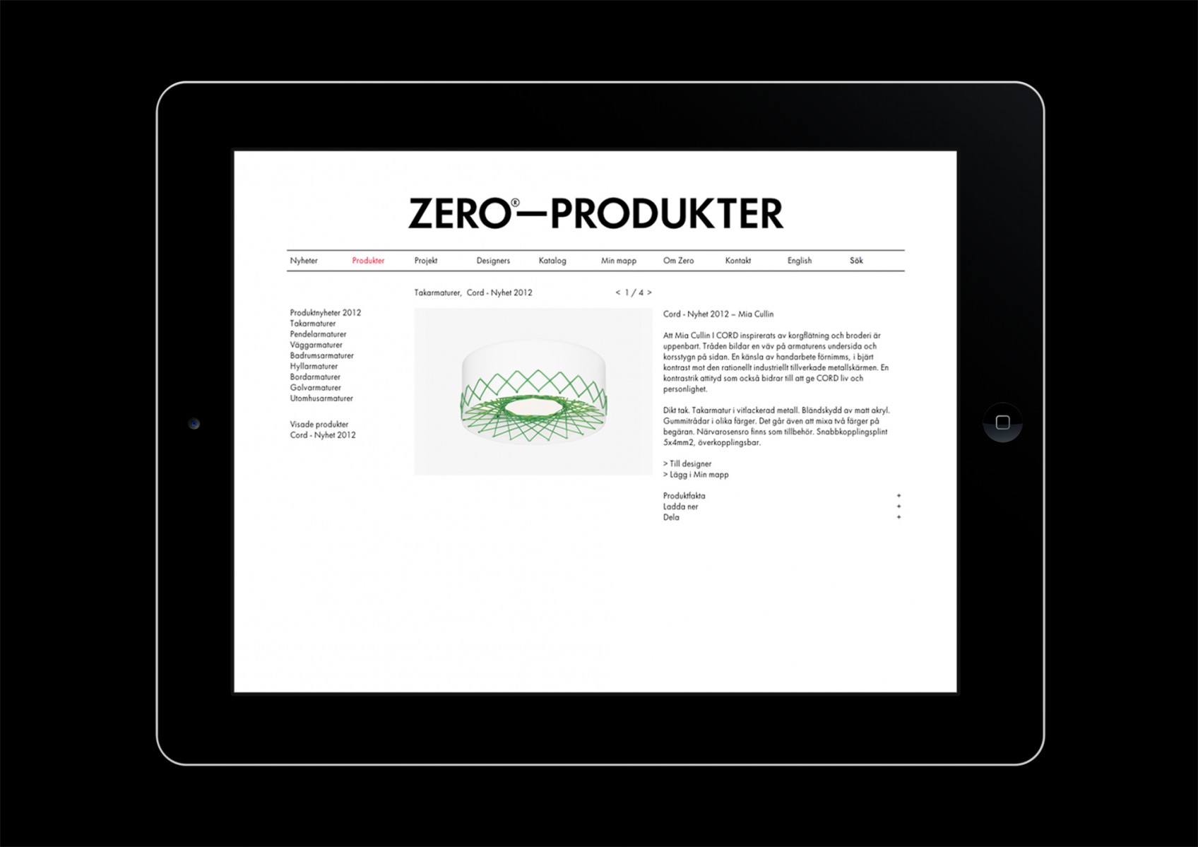 Website for Swedish lighting company Zero.