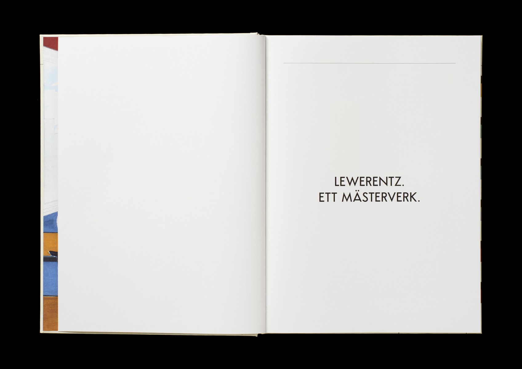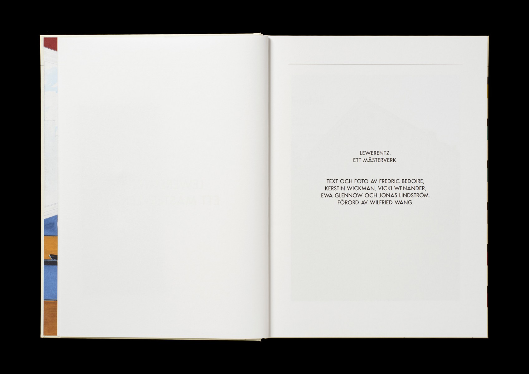 Omslag och originalproduktion till boken Lewerentz, ett mästerverk. Om fastigheten Grönlandet på Adolf Fredriks Kyrkogata 8 i Stockholm, ritad av Sigurd Lewerentz 1931 för Riksförsäkringsanstalten. På uppdrag av Bokförlaget Langenskiöld och i samarbete med