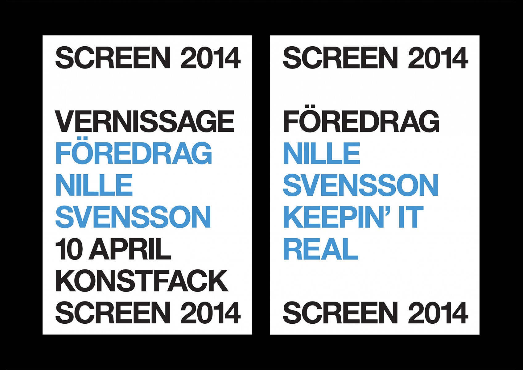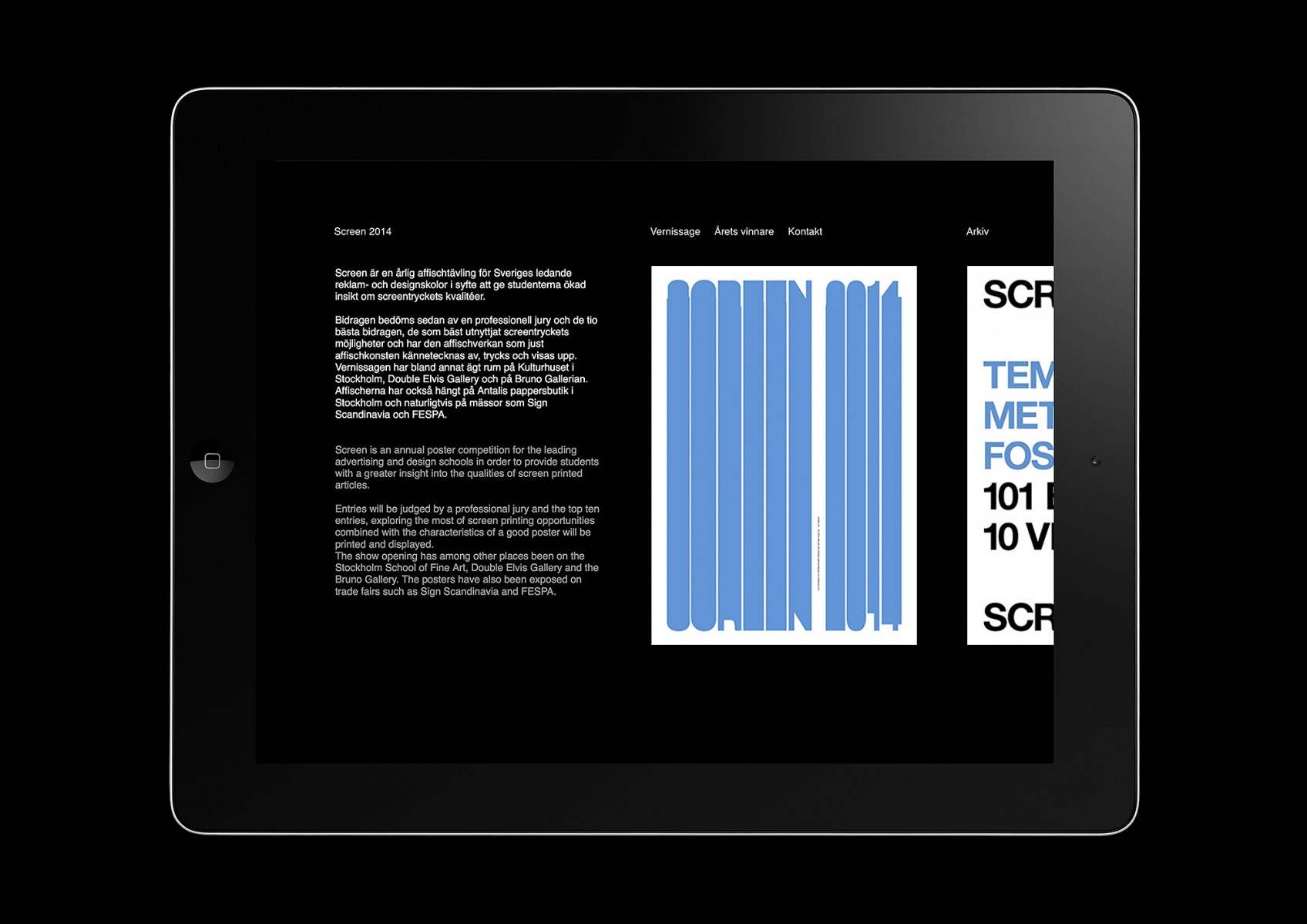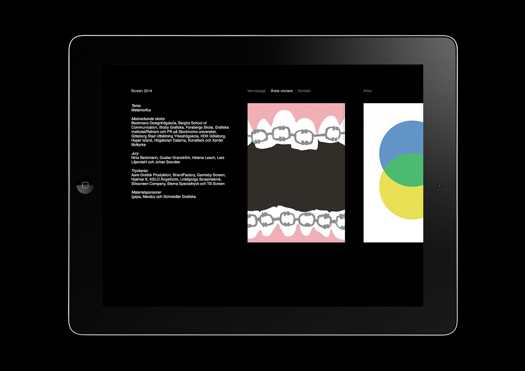 Inbjudningar, affischer, diplom, hemsida med mera till Screen 2014, Svenska Screen- & Specialtryckares Förenings årliga affischtävling för landets ledande reklam- och designskolor.