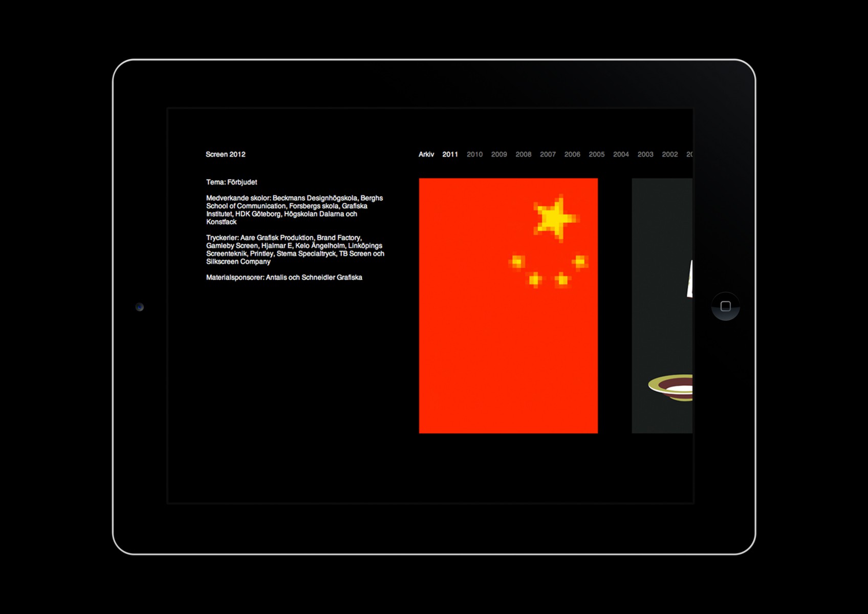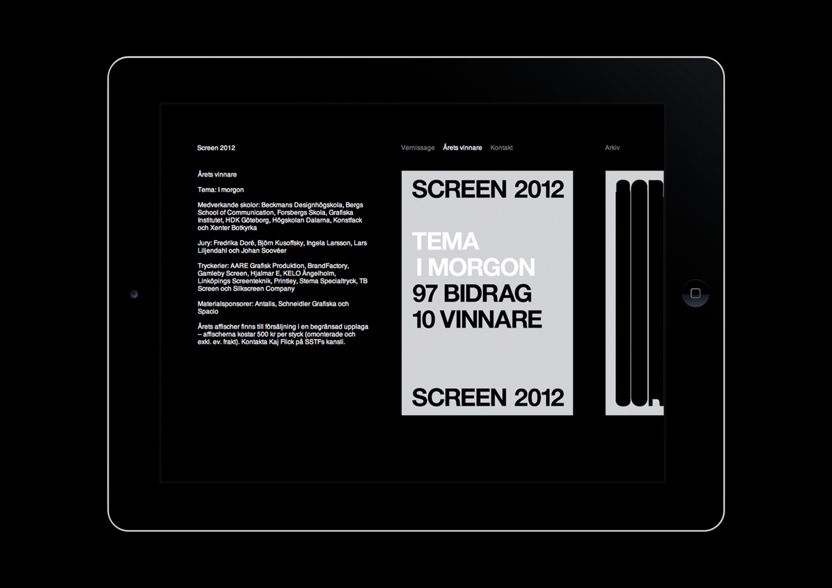Hemsidan till Svenska Screen- & Specialtryckares Förenings årliga affischtävling för landets ledande reklam- och designskolor, Screen 2012.