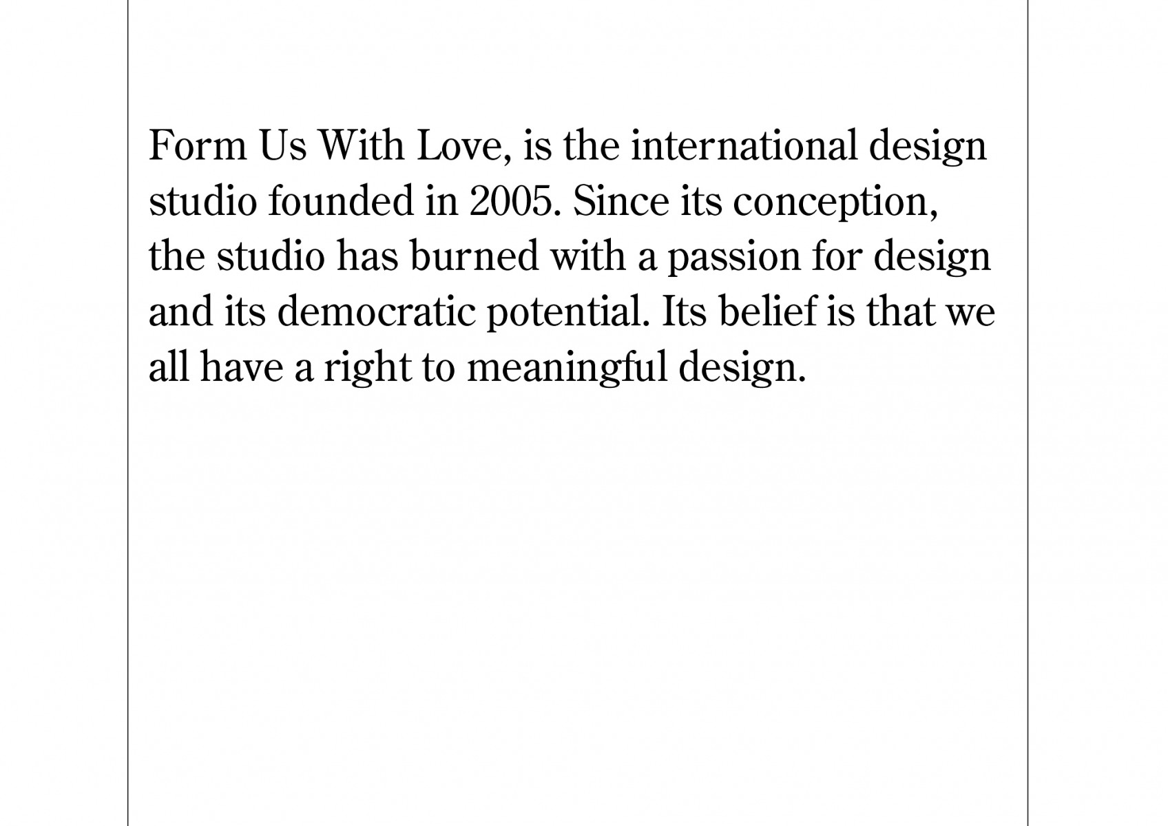 Ny identitet på uppdrag av den Stockholmsbaserade designstudion Form Us With Love i samband med företagets tio-års-jubileum, vintern 2016. Logotype, grafiska element, typografi, hemsida, annonser, presentationsmaterial, dokumentmallar, stationery med mera.