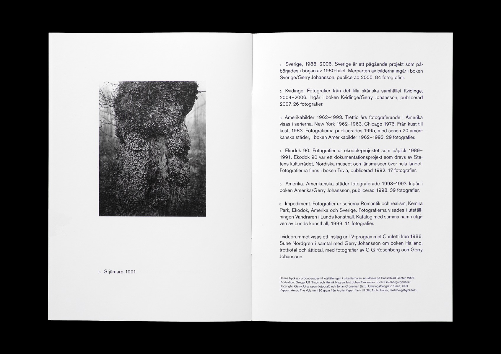 Utställning och utställningskatalog för Hasselblad Center: Gerry Johansson, i utkanterna av sin tillvaro. Utgiven i samband med utställningen med samma namn.