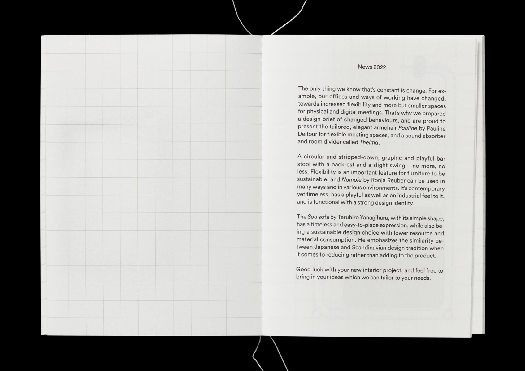 Anteckningsboken Offecct + Sketches, Ideas and News på uppdrag av Offecct i samband med lanseringen av Nomole av Ronja Reuber, Sou av Teruhiro Yanagihara och Thelma och Pauline av Pauline Deltour, under Stockholm Design Week 2022. Tidigare utgivna böcker i serien: Offecct + Matti Klenell (2021), Offecct + Luca Nichetto (2021), Offecct + Lucy Kurrein (2021).
