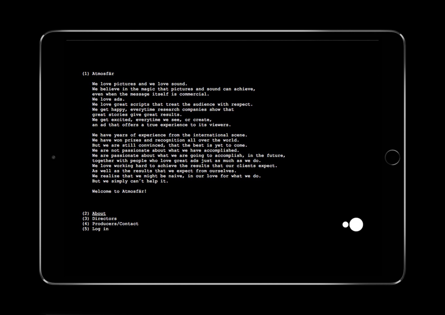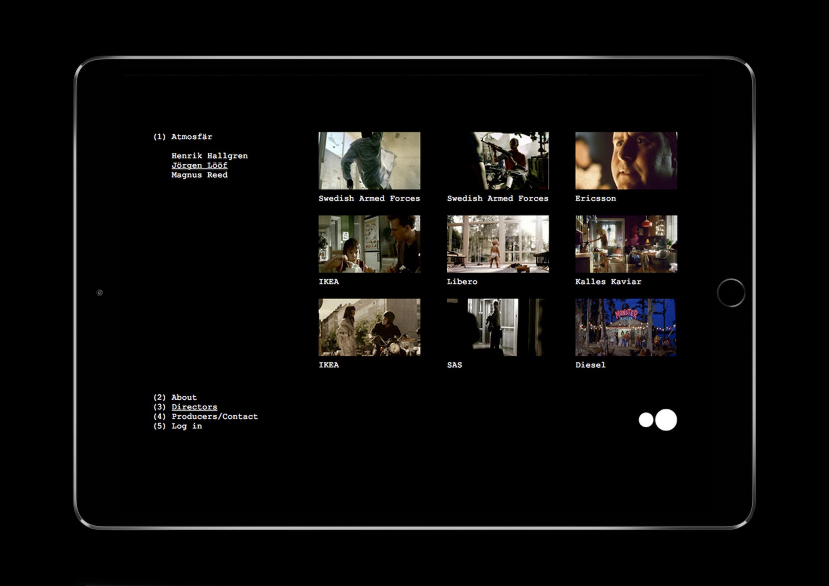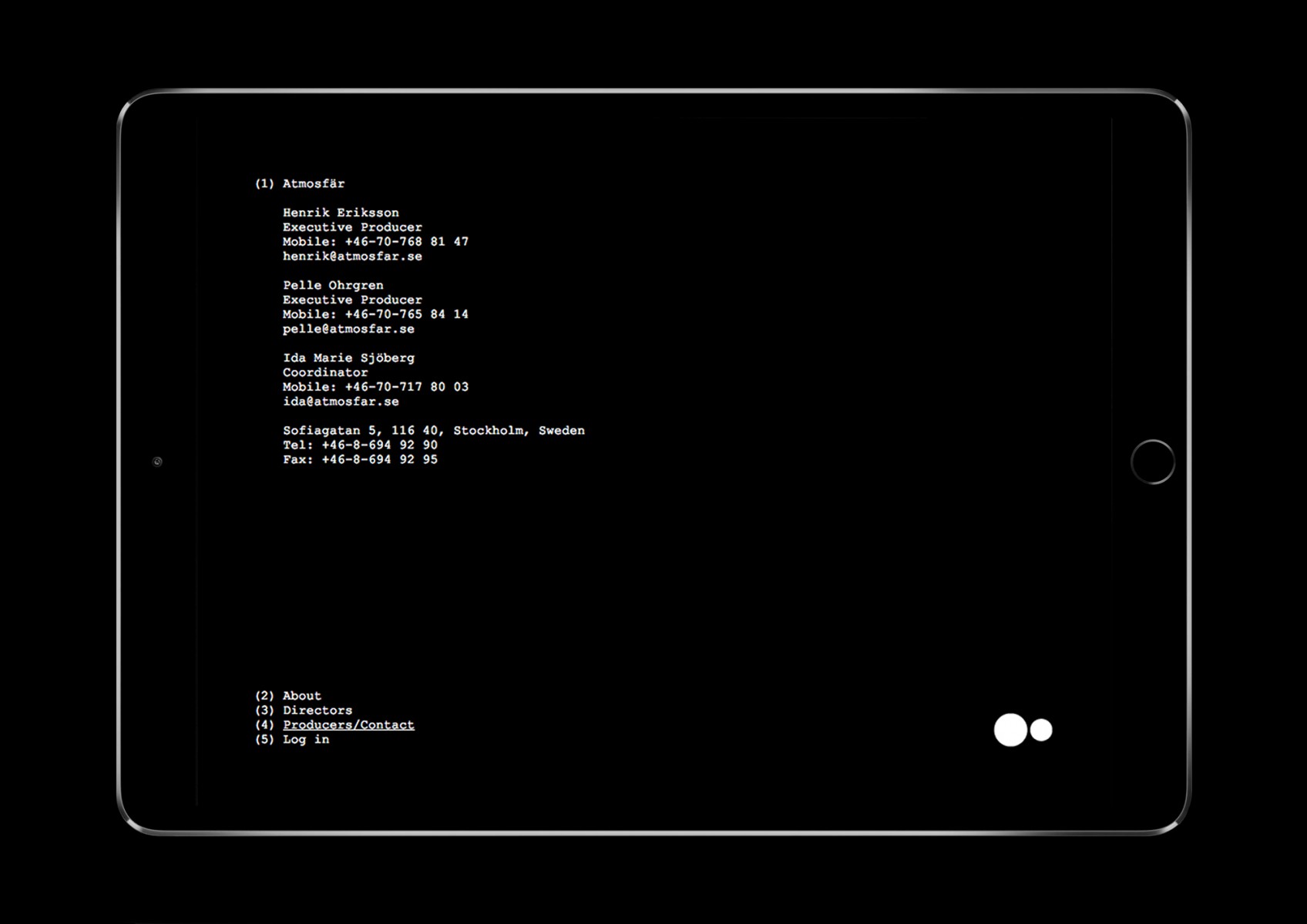 Identitet och hemsida för filmproduktionsbolaget Atmosfär Produktion. Logotype, symboler, typografi, förpackningar, trycksaker, stationery m.m.
