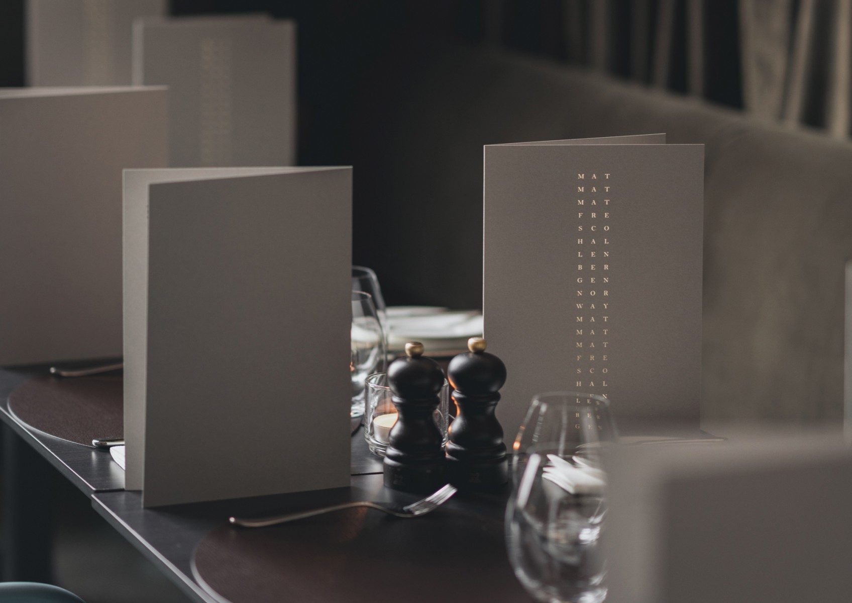 Logotype, grafiska element, typografi, skyltsystem, personalkläder, pins, menyer, drinkunderlägg, skyltsystem, dokumentmallar, stationery med mera.