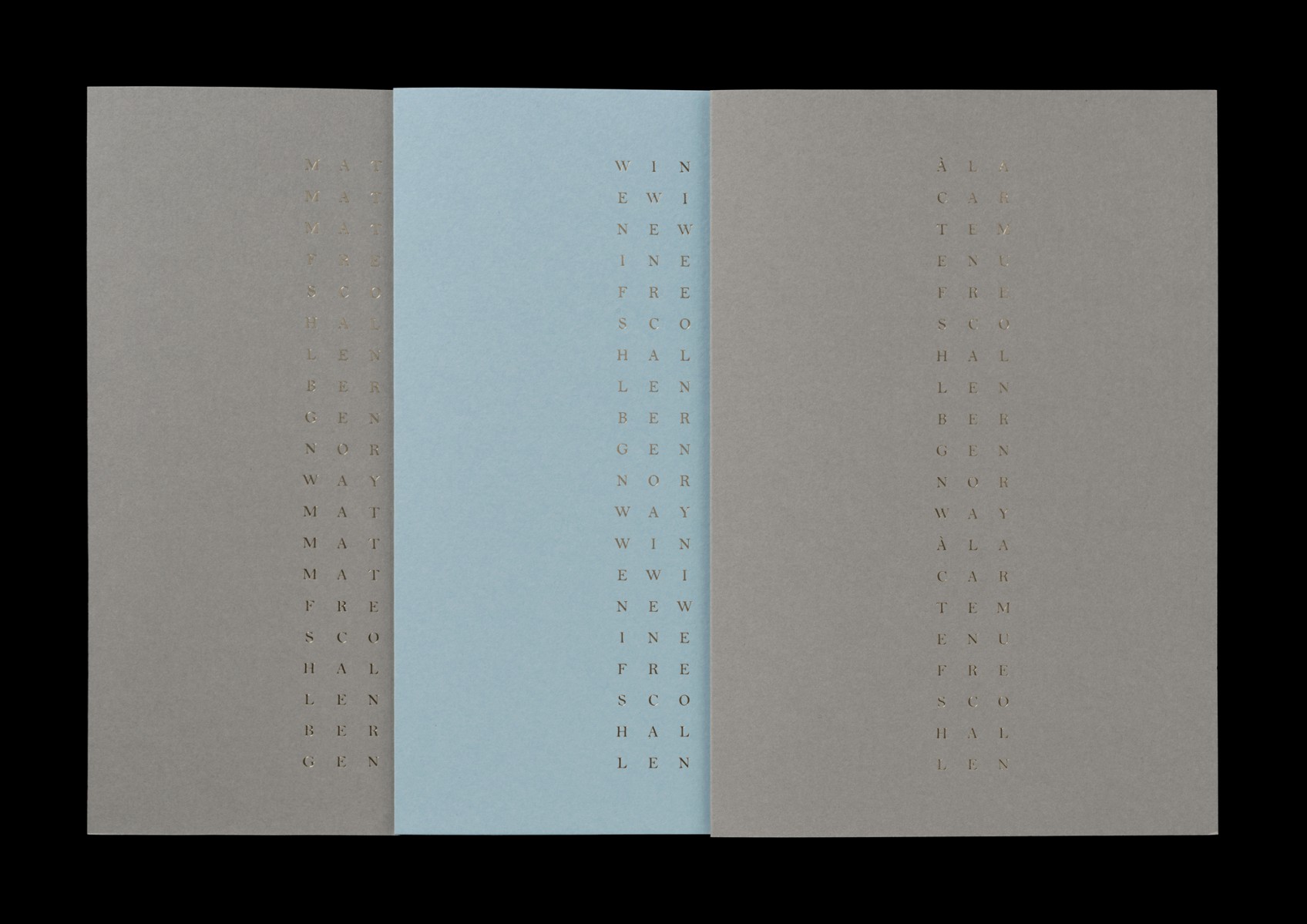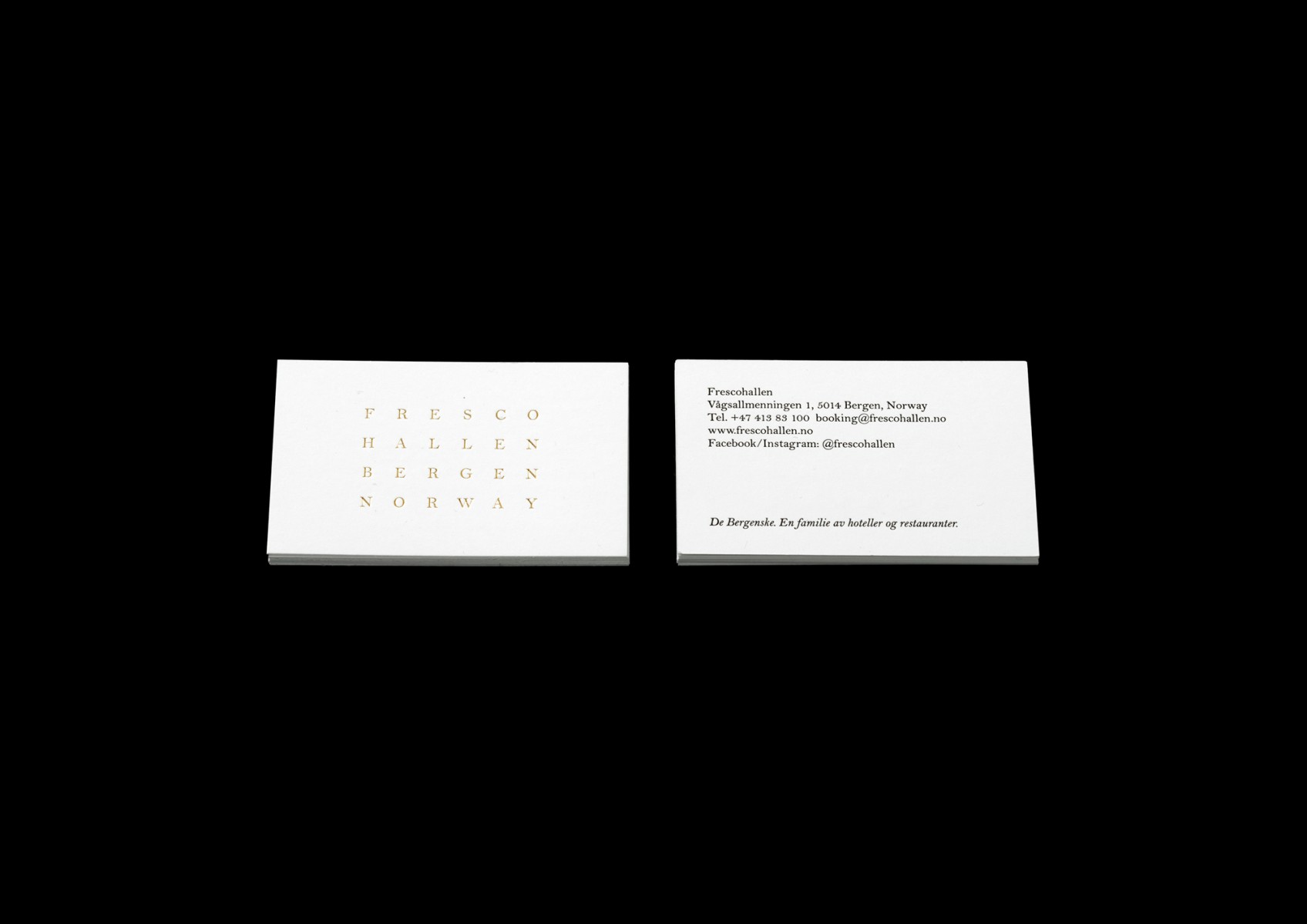 Ny identitet åt Frescohallen, en ny restaurang i Bergen (Norge). På uppdrag av hotell- och serviceföretaget De Bergenske som bland annat driver hotellen Villa Terminus, Hotel Zander K, Hotel Bergen Børs, Hotel Hordaheimen och Hotel Augustin.