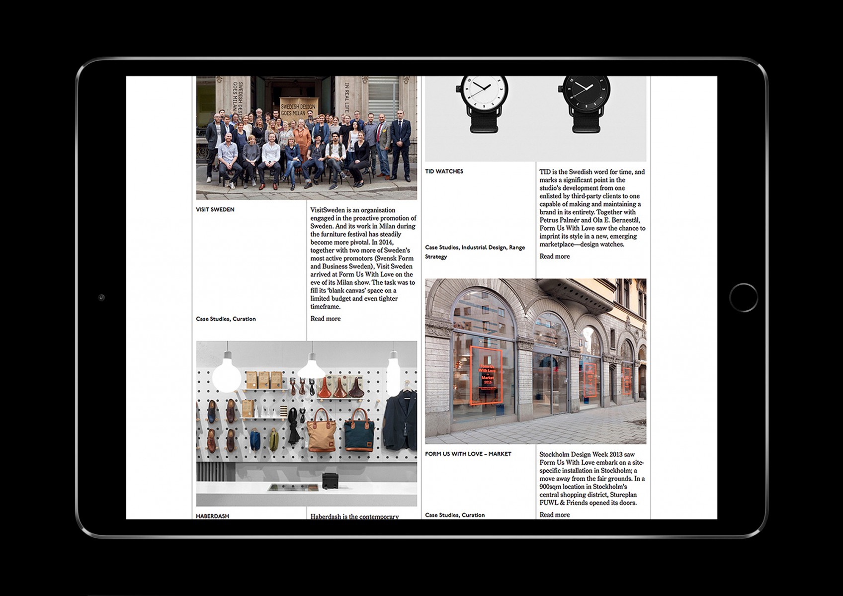 Ny identitet på uppdrag av den Stockholmsbaserade designstudion Form Us With Love i samband med företagets tio-års-jubileum, vintern 2016. Logotype, grafiska element, typografi, hemsida, annonser, presentationsmaterial, dokumentmallar, stationery med mera.