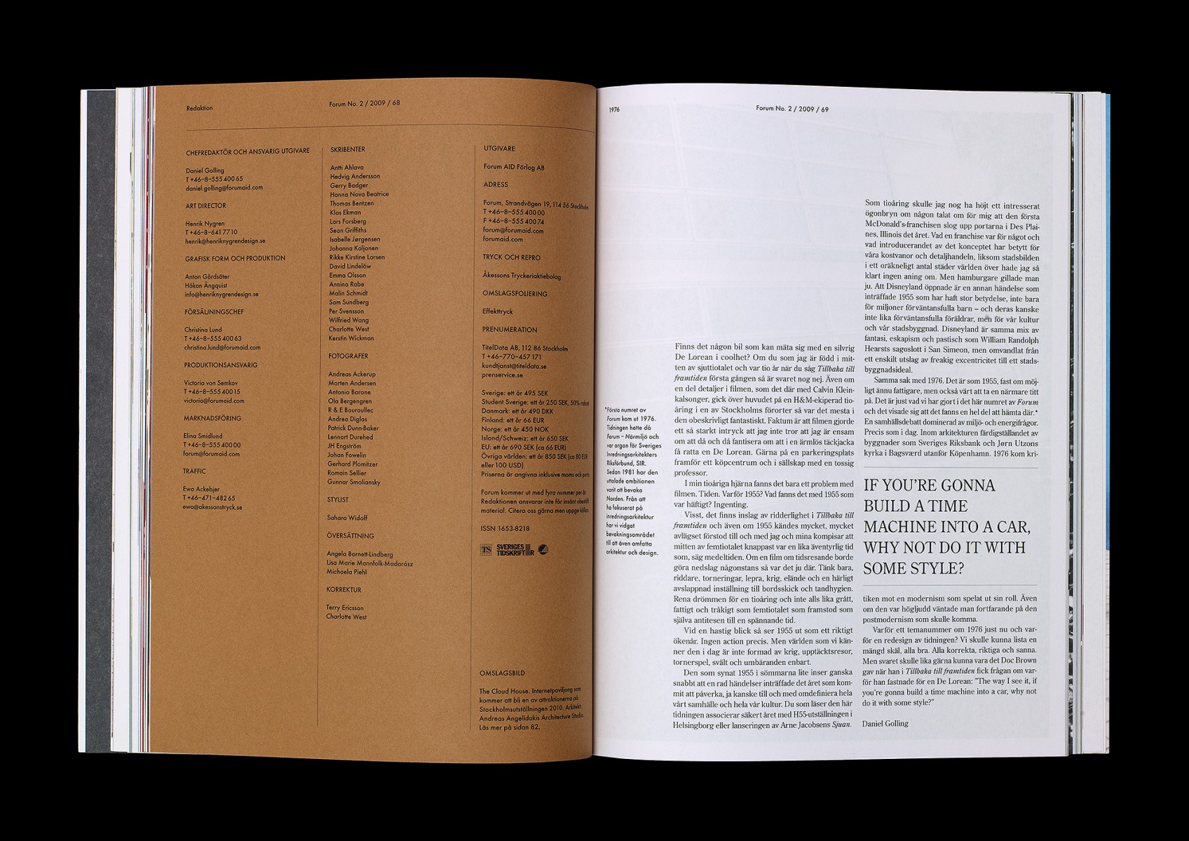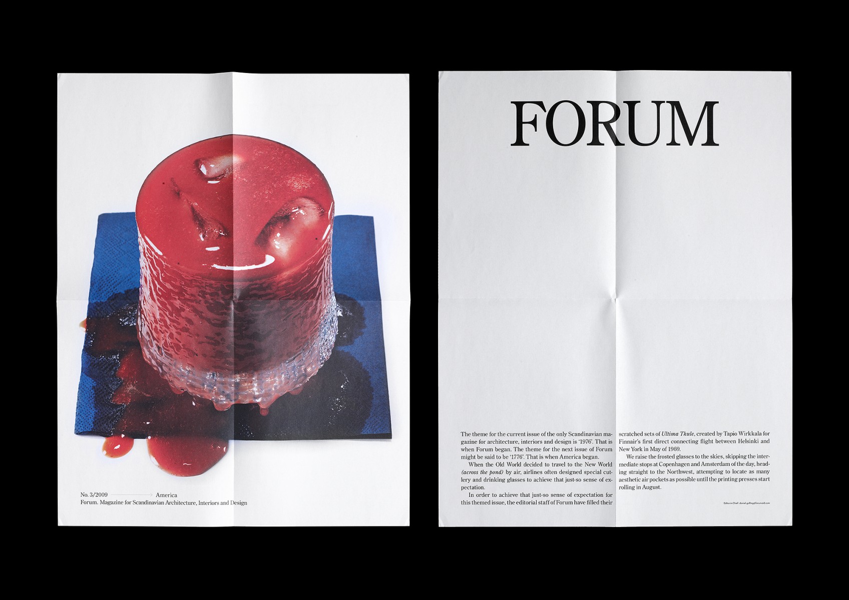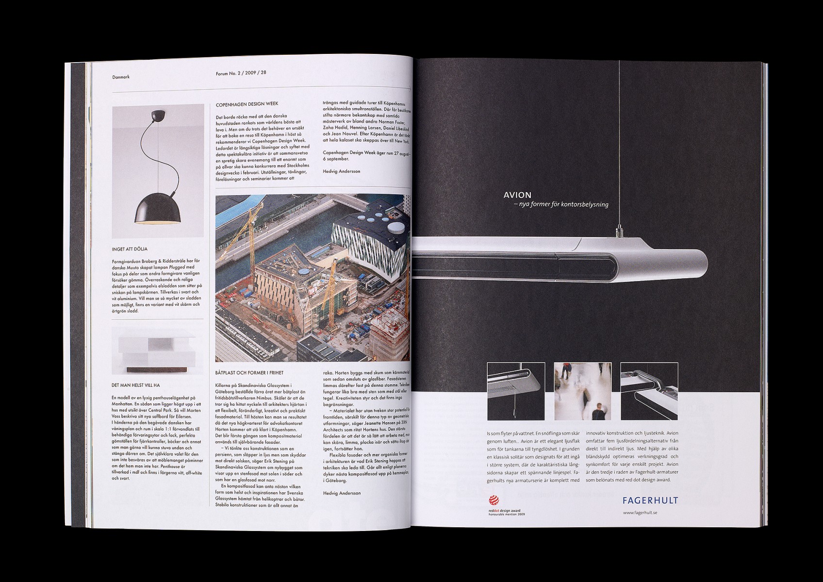 Redesign, redaktionsmedverkan, art direction och produktion av kvartalsmagasinet Forum, magasin för nordisk arkitektur, inredning och design. No. 2/2009 (tema: 1976 – året första numret utkom).