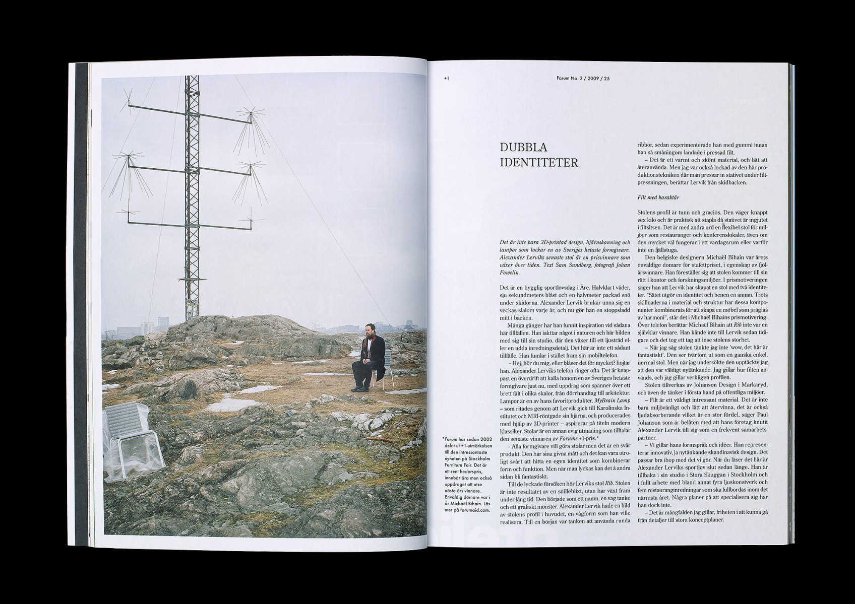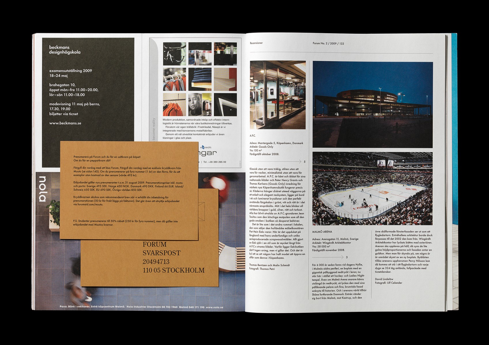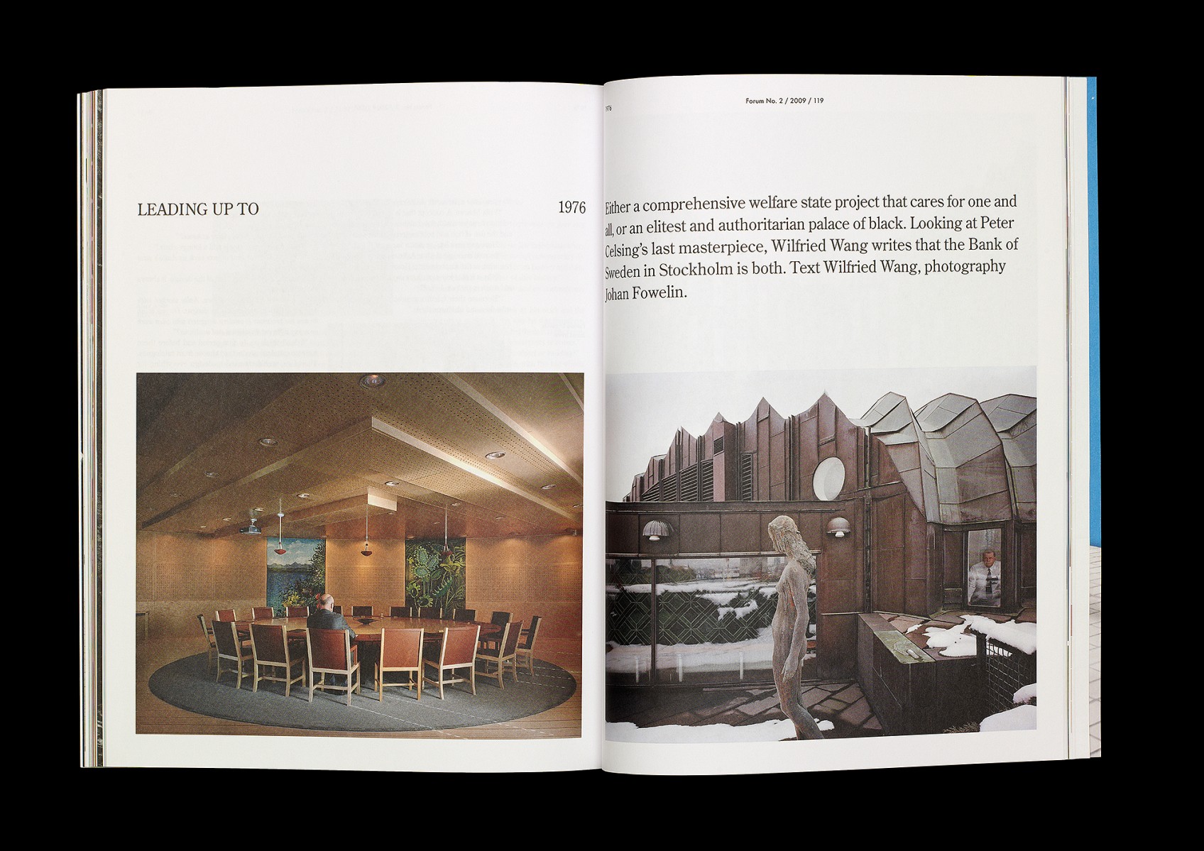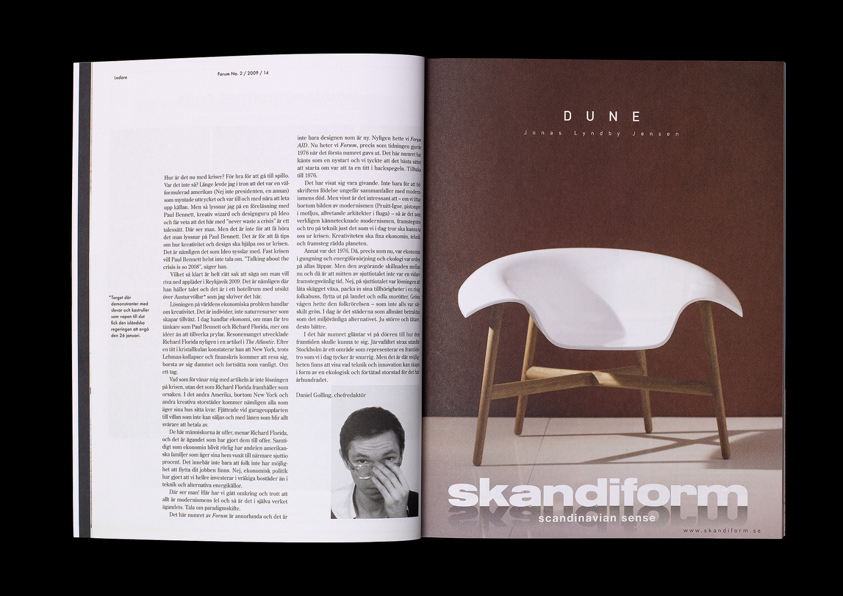 Redesign, redaktionsmedverkan, art direction och produktion av kvartalsmagasinet Forum, magasin för nordisk arkitektur, inredning och design. No. 2/2009 (tema: 1976 – året första numret utkom).