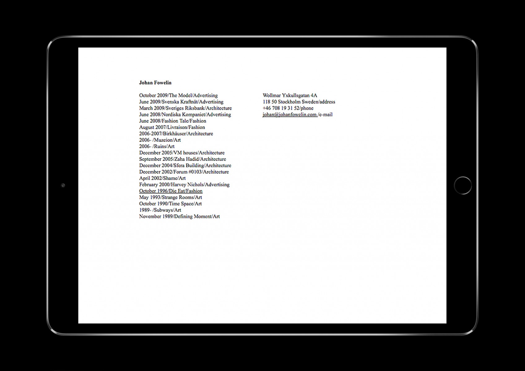 Hemsida för fotografen och konstnären Johan Fowelin.
