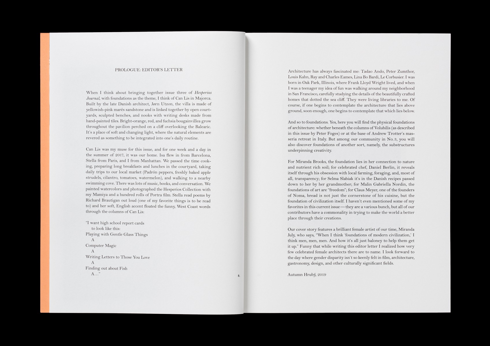 Art direction och produktion av Hesperios Journal, No. 3, Foundations. Editor in Chief: Autumn Hrubý. Senior Editor: Robin Jones. Editor: Erik Heywood.