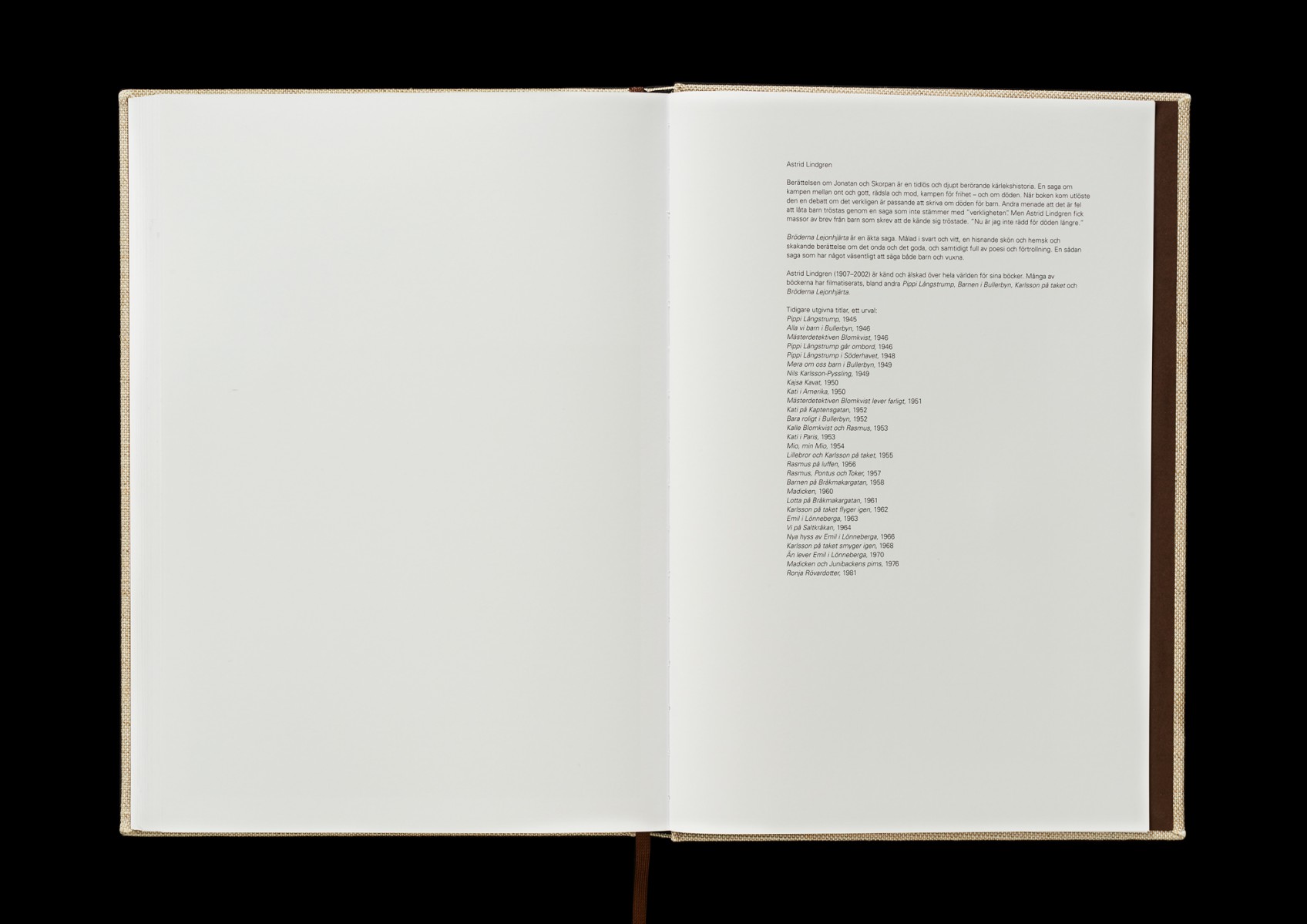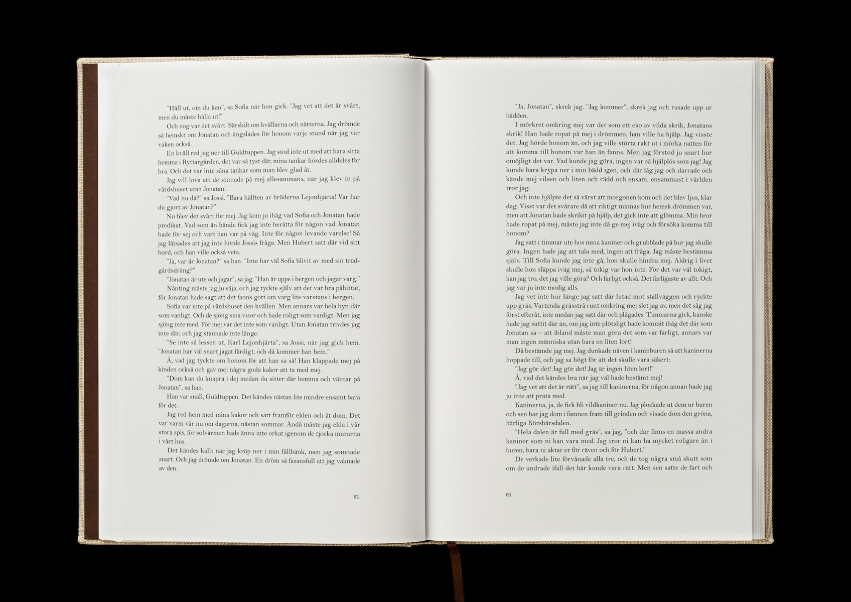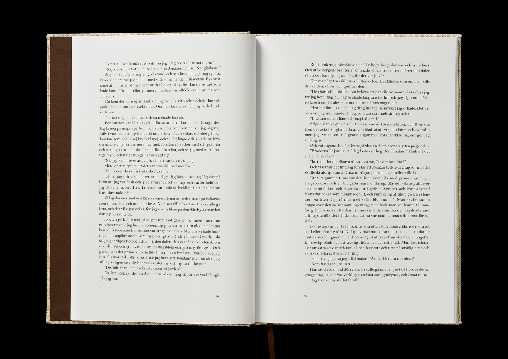 Specialupplaga av den nya utgåvan av boken Bröderna Lejonhjärta, av Astrid Lindgren från 1973, på uppdrag av Rabén & Sjögren i samarbete med Saltkråkan. Bokrelease i samband med utställningen på Kulturhuset Stadsteatern i Stockholm, sommaren 2018.