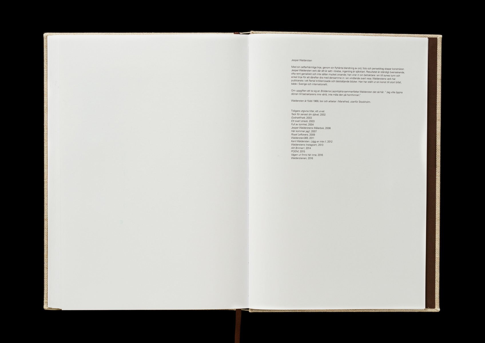 Hårdband, 224 sidor, 192x270 mm, offset, screentryckt omslag och märkband. (2016–18)