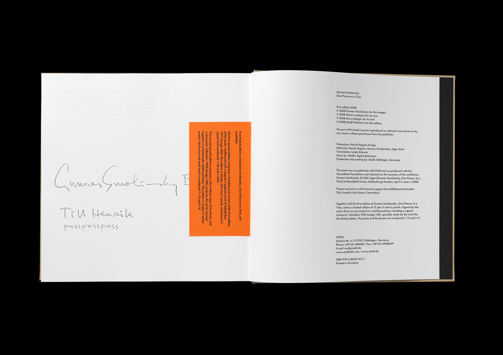 Specialutgåva och AP (50+30 exemplar) av bok för Steidl Verlag (Tyskland) om fotografen Gunnar Smolianskys konstnärsskap åren 1952–2008: One Picture at a Time.