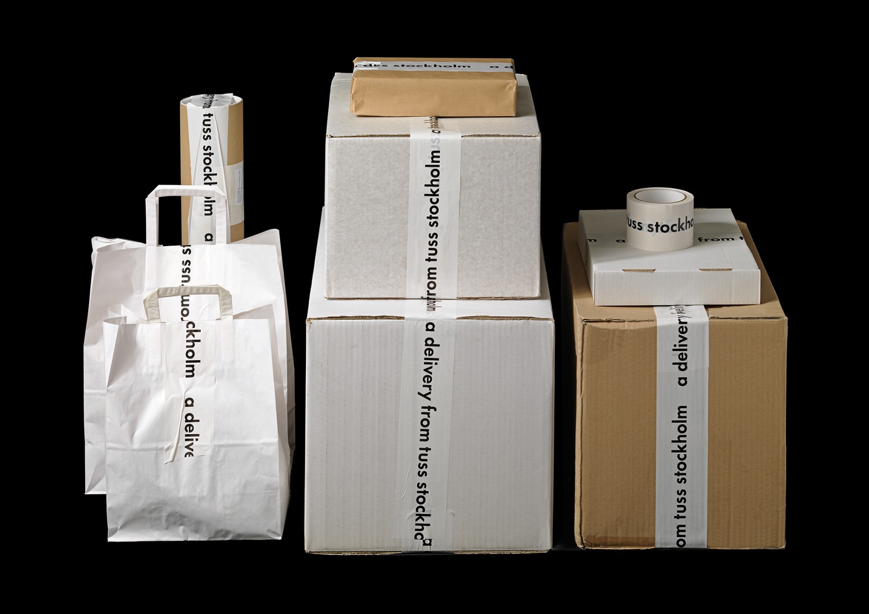 Identitet för Tuss, The Ultimate Simple Solution, barnklädesföretaget och butiken i Stockholm. Logotype och typografi, skyltsystem, förpackningar, stationery m.m. (2003–)